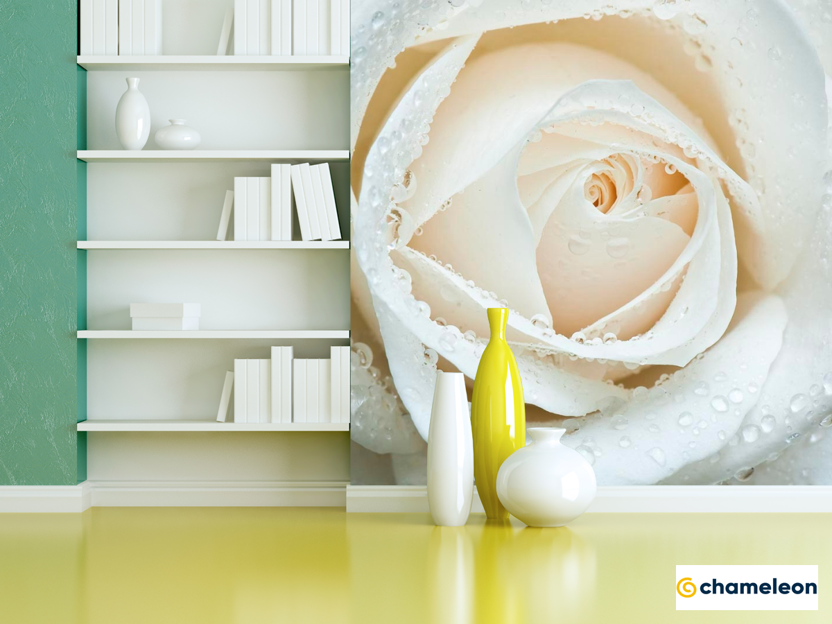 Фотошпалери «Фотошпалери Біла троянда макро-зйомка», (арт. 10134) - купити в інтернет-магазині «Будинок Фотошпалер» Хамелеон