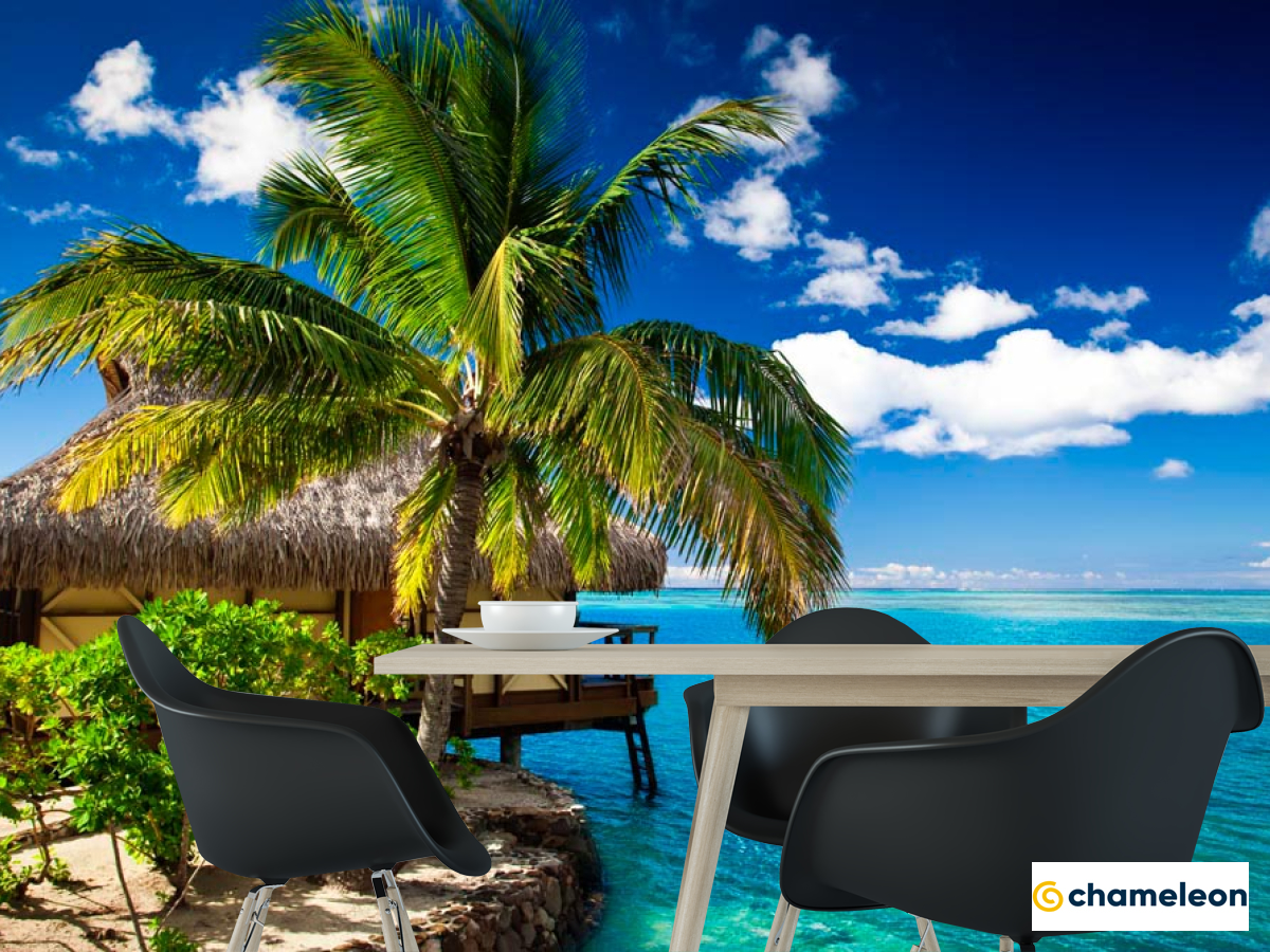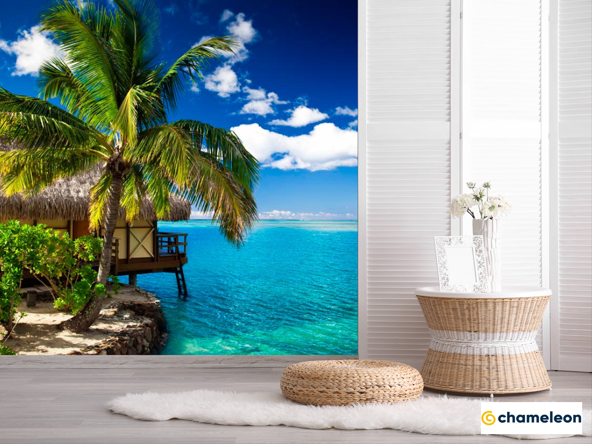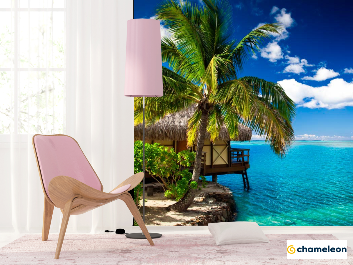 Фотошпалери «Фотошпалери Пальма з хатиною», (арт. 10758) - купити в інтернет-магазині «Будинок Фотошпалер» Хамелеон