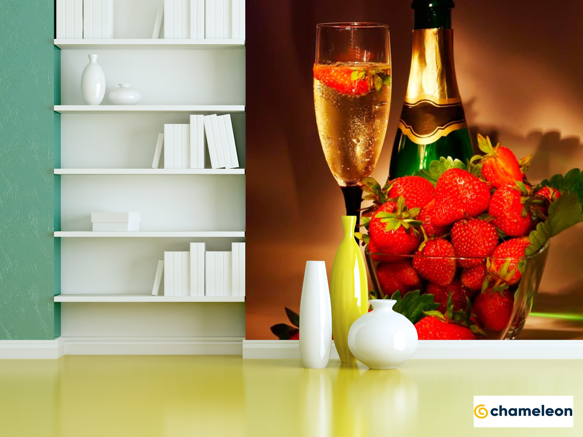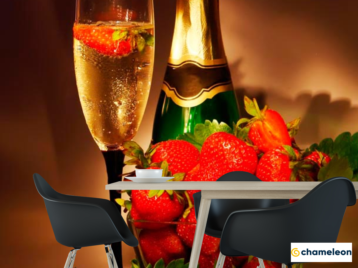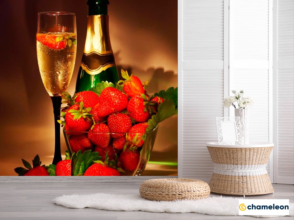 Фотошпалери «Фотошпалери Полуниця, шампанське», (арт. 10959) - купити в інтернет-магазині «Будинок Фотошпалер» Хамелеон
