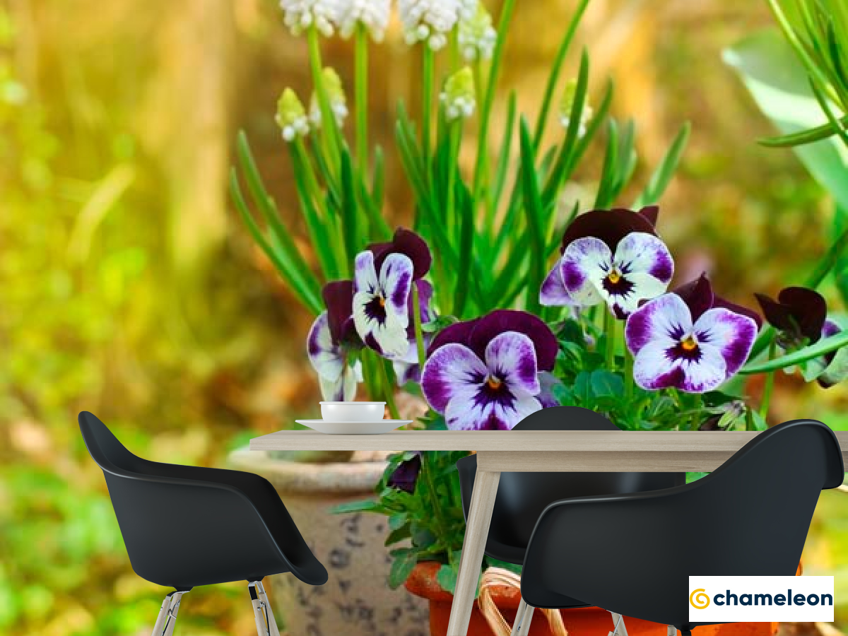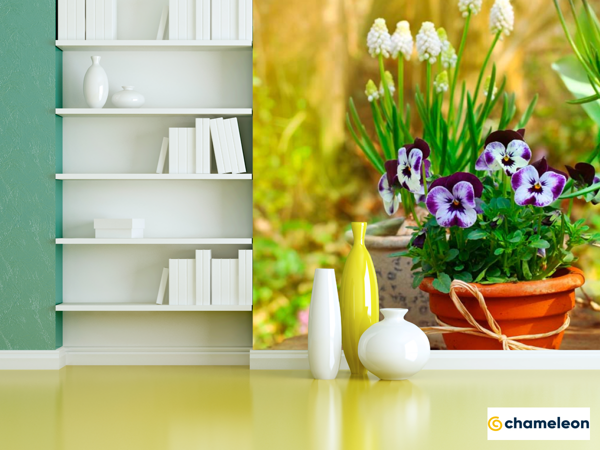 Фотошпалери «Фотошпалери Горщик з фіалками», (арт. 11037) - купити в інтернет-магазині «Будинок Фотошпалер» Хамелеон