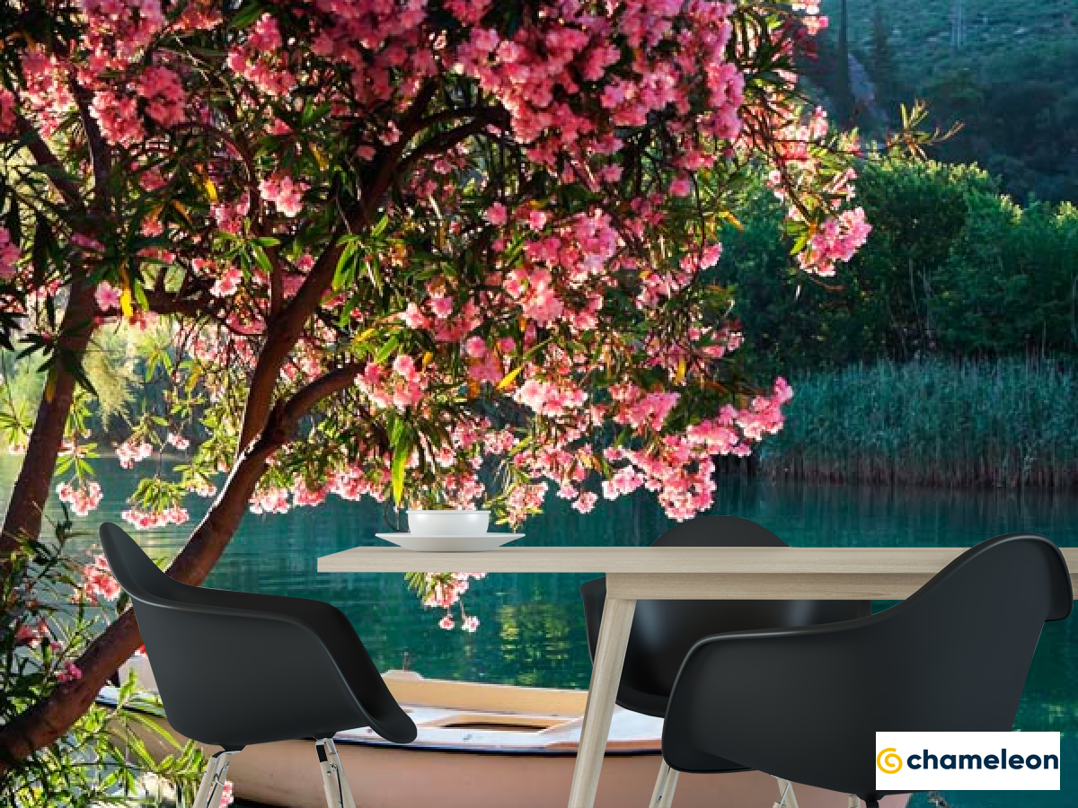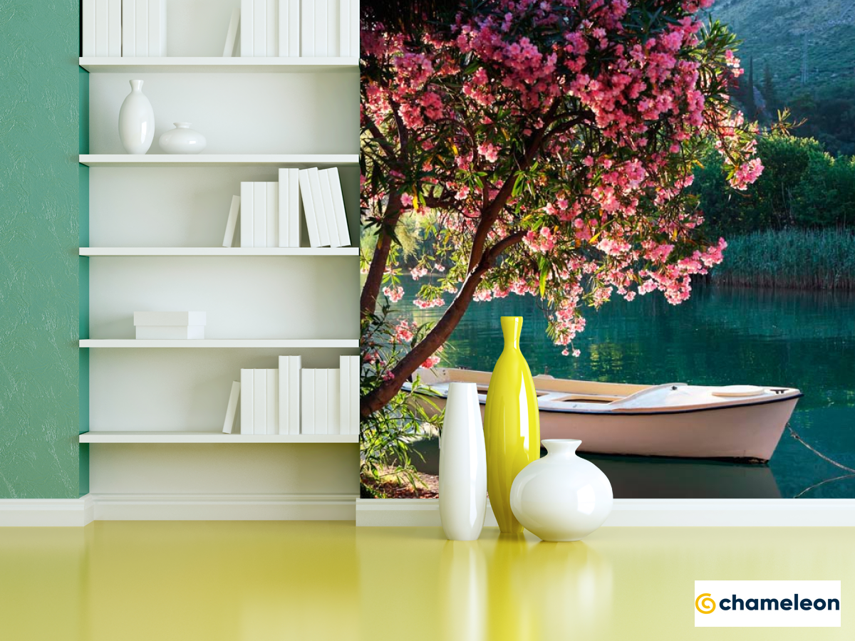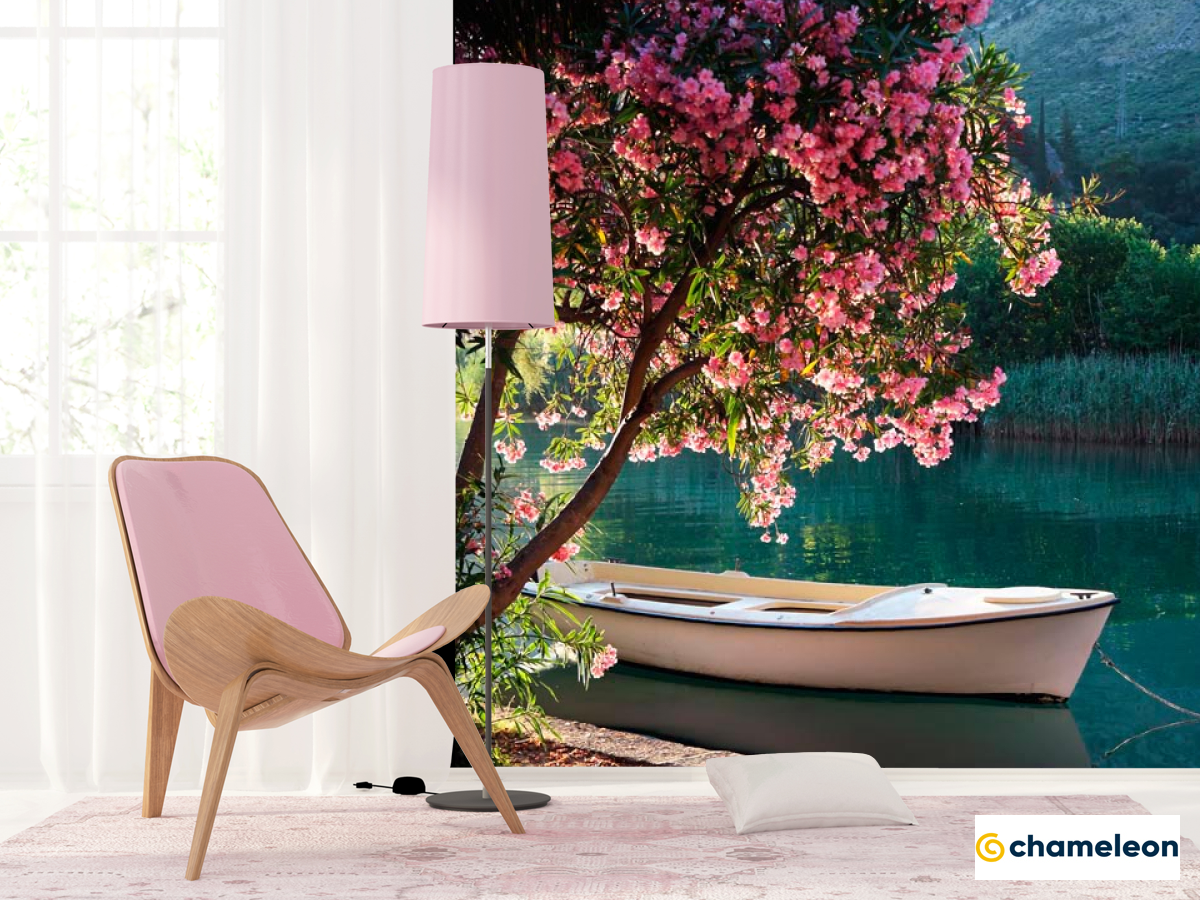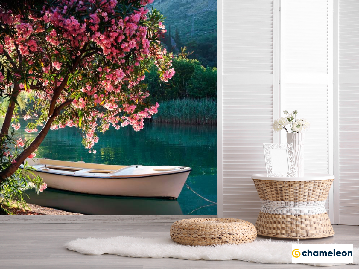 Фотошпалери «Фотошпалери Човен, берег, квіти», (арт. 1634) - купити в інтернет-магазині «Будинок Фотошпалер» Хамелеон