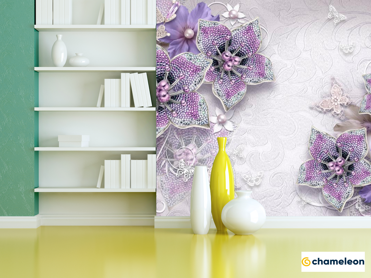 Фотошпалери «Фотошпалери 3d брошка+квіти», (арт. 18773) - купити в інтернет-магазині «Будинок Фотошпалер» Хамелеон