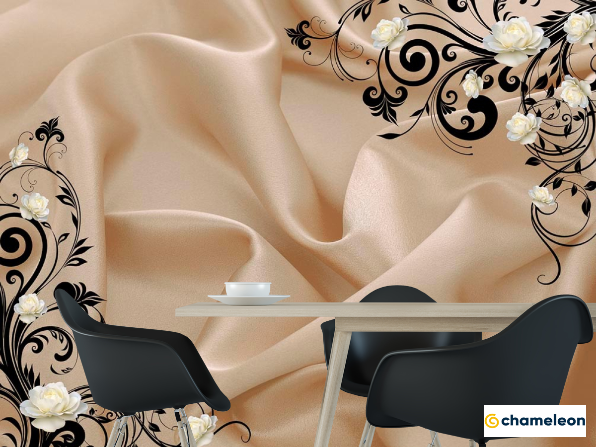 Фотошпалери «Фотошпалери Атласна тканина і 3d троянди», (арт. 18787) - купити в інтернет-магазині «Будинок Фотошпалер» Хамелеон