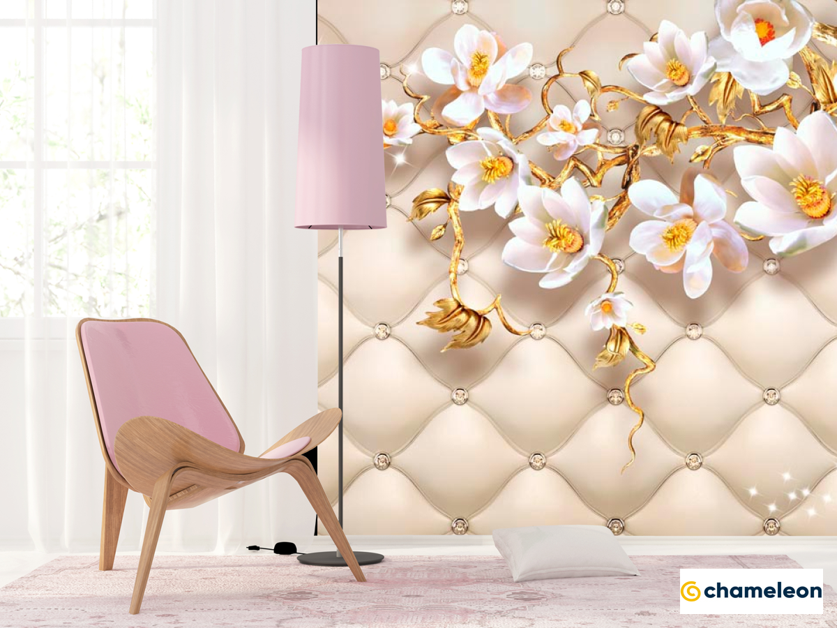Фотошпалери «Фотошпалери Золоті 3d магнолії», (арт. 18792) - купити в інтернет-магазині «Будинок Фотошпалер» Хамелеон