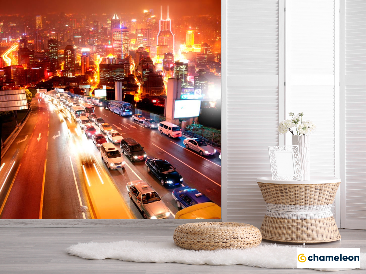 Фотошпалери «Фотошпалери Ніч, місто, пробка», (арт. 1880) - купити в інтернет-магазині «Будинок Фотошпалер» Хамелеон