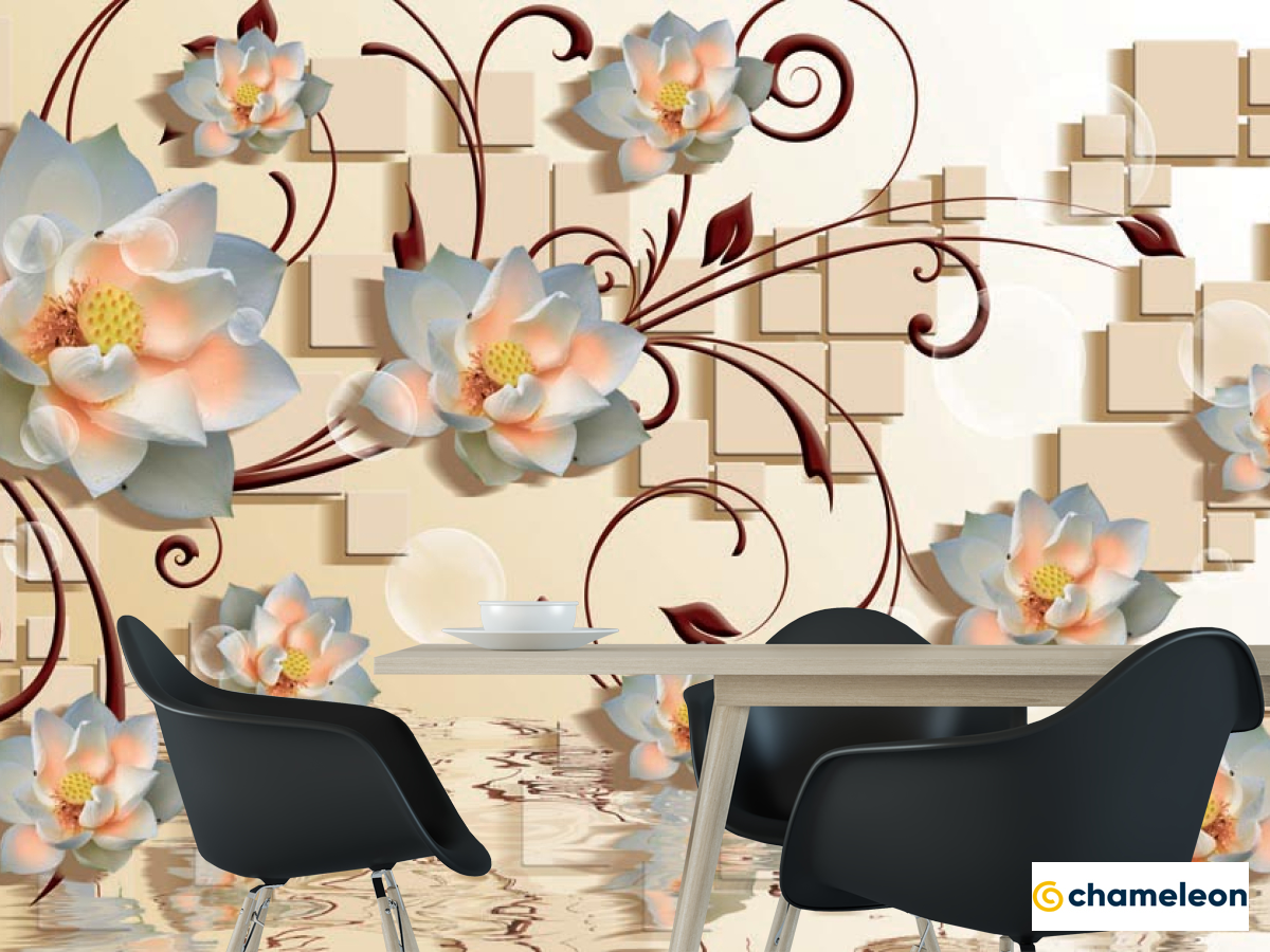 Фотошпалери «Фотошпалери Квіти 3d і квадрати», (арт. 19269) - купити в інтернет-магазині «Будинок Фотошпалер» Хамелеон