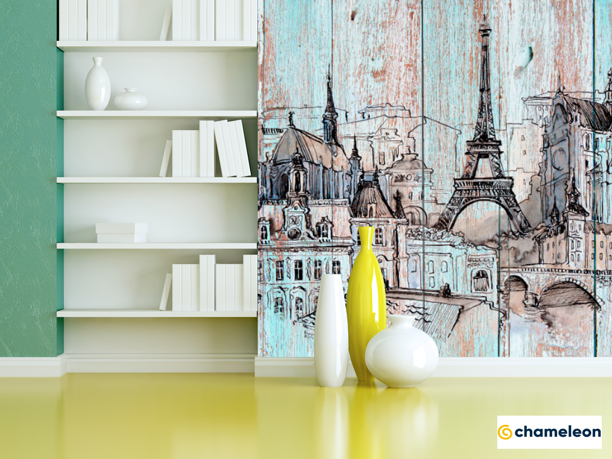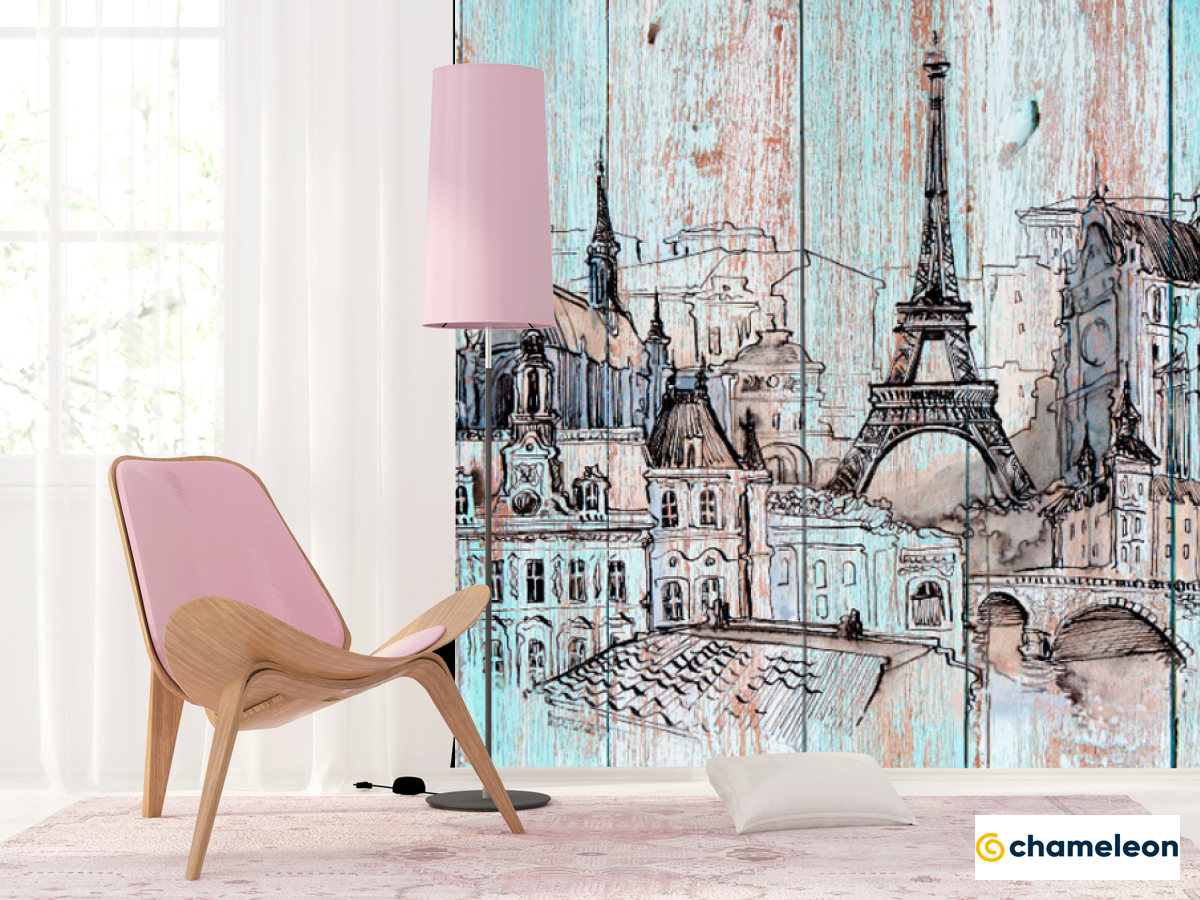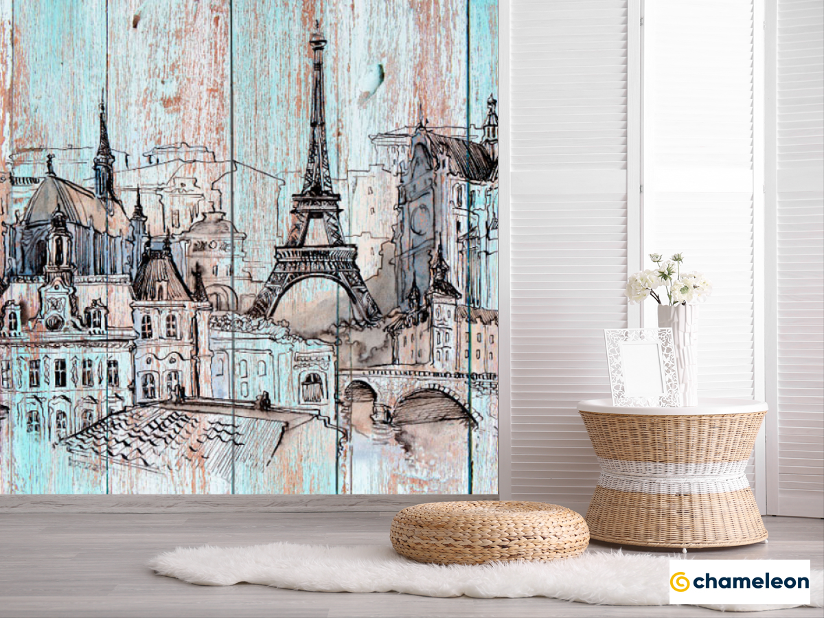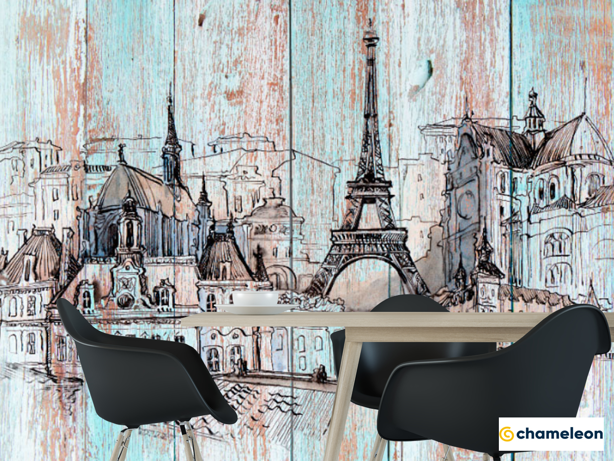 Фотошпалери «Фотошпалери Париж на деревяних дошках», (арт. 19917) - купити в інтернет-магазині «Будинок Фотошпалер» Хамелеон