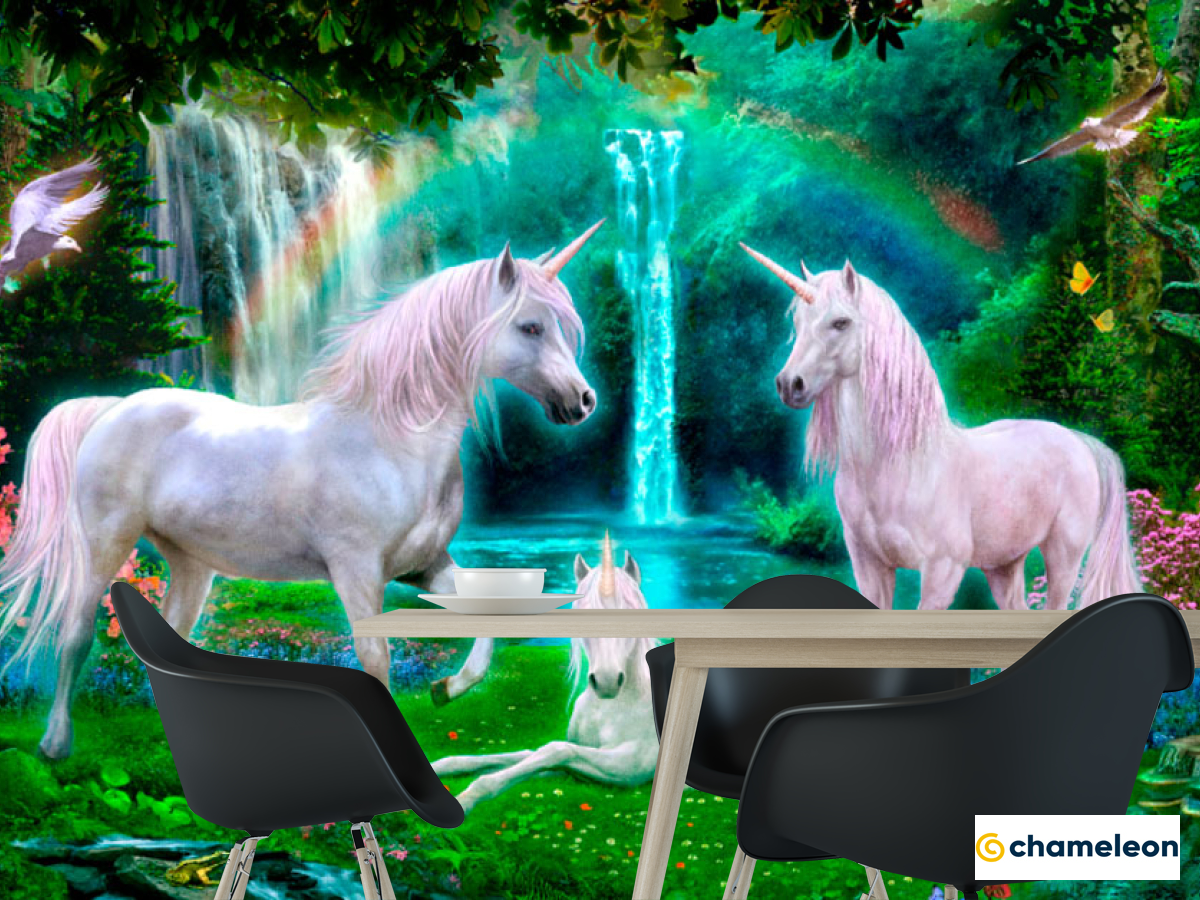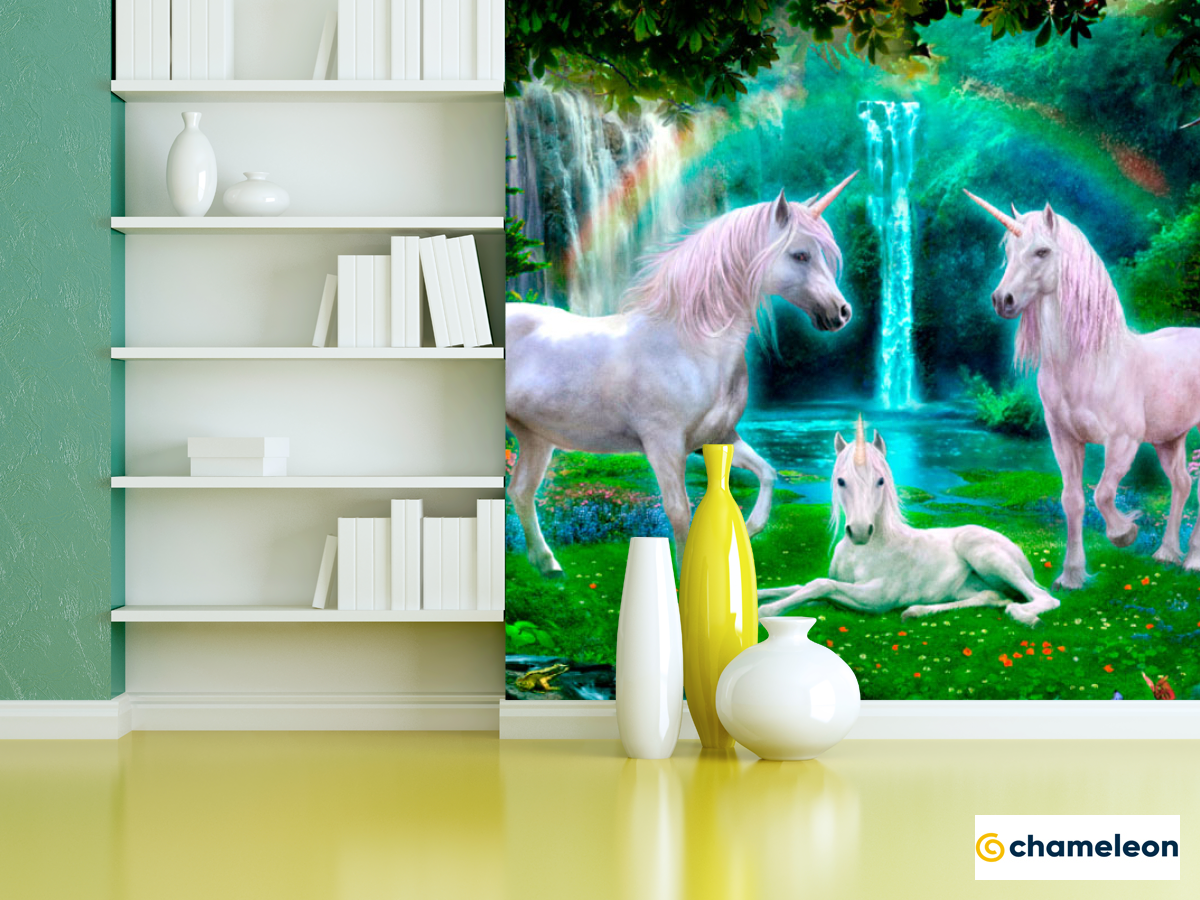 Фотошпалери «Фотошпалери Казкові 3 єдинорога», (арт. 19935) - купити в інтернет-магазині «Будинок Фотошпалер» Хамелеон