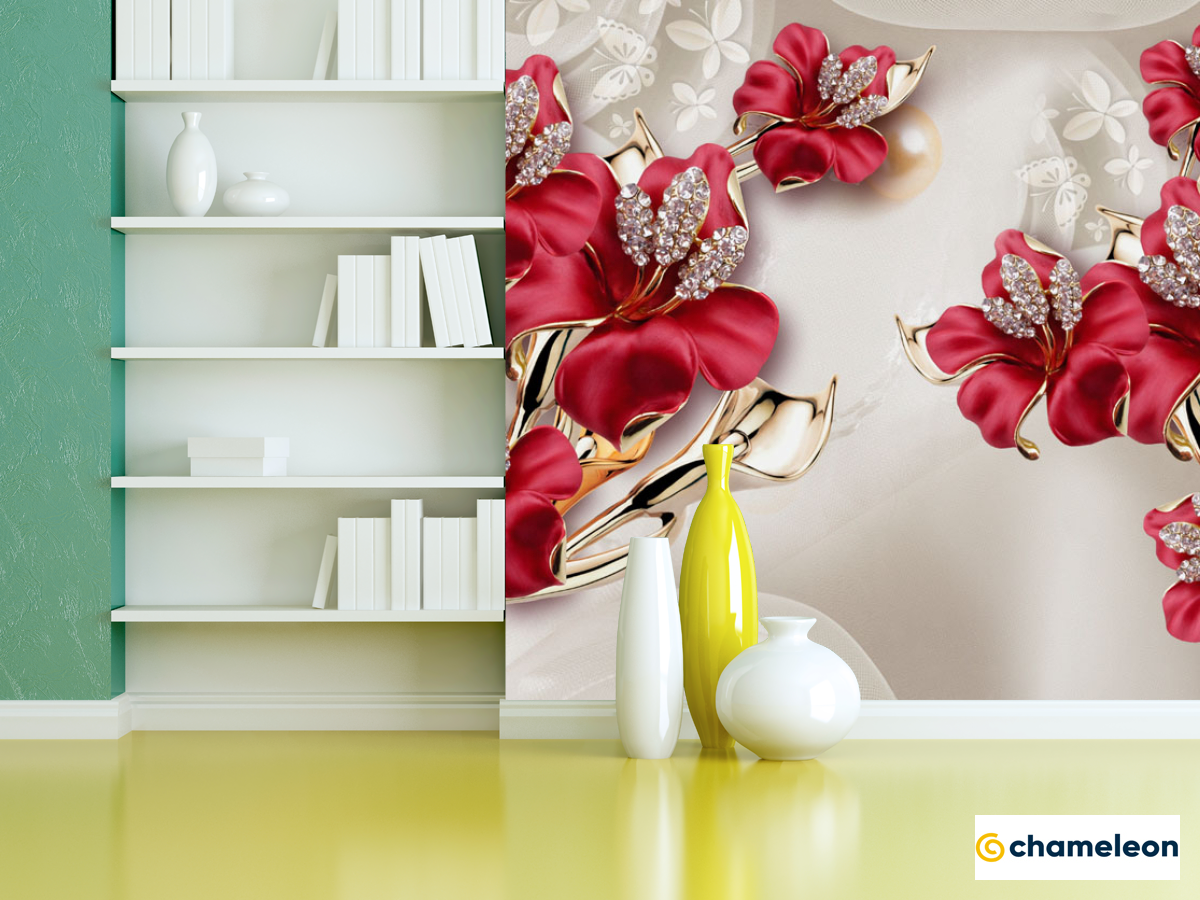 Фотошпалери «Фотошпалери Бордові квіти 3Д», (арт. 20001) - купити в інтернет-магазині «Будинок Фотошпалер» Хамелеон
