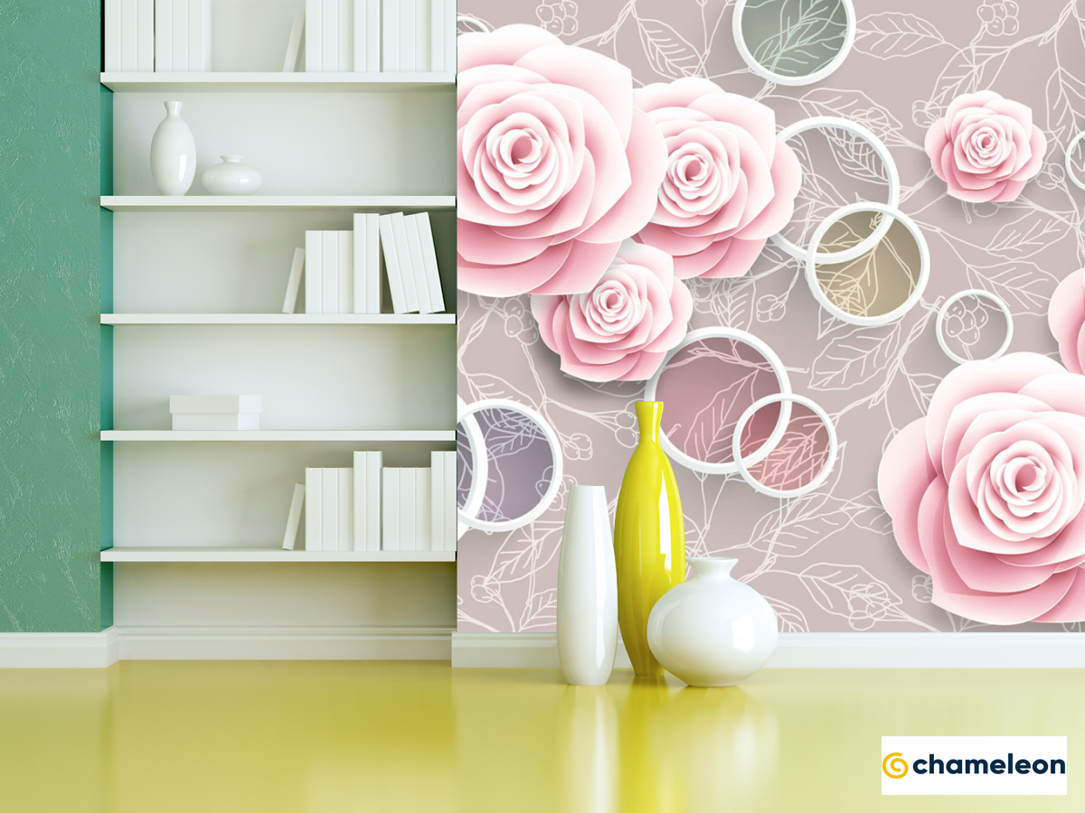 Фотошпалери «Фотошпалери Рожеві трояндочки 3Д», (арт. 20065) - купити в інтернет-магазині «Будинок Фотошпалер» Хамелеон