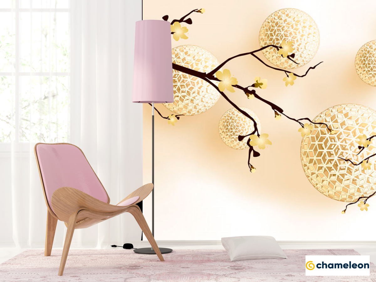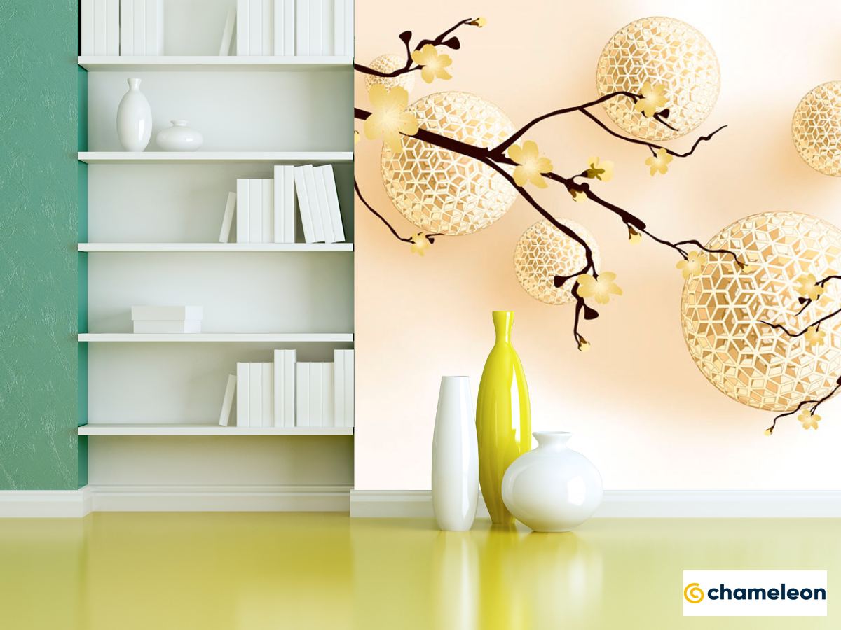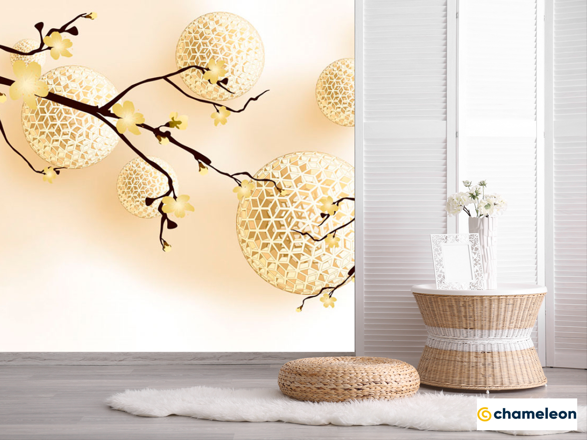 Фотошпалери «Фотошпалери Жовті сфери і гілочки», (арт. 20073) - купити в інтернет-магазині «Будинок Фотошпалер» Хамелеон