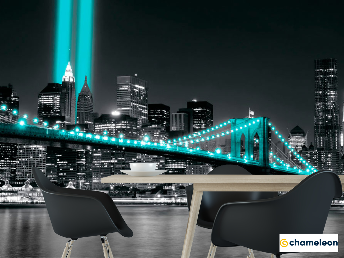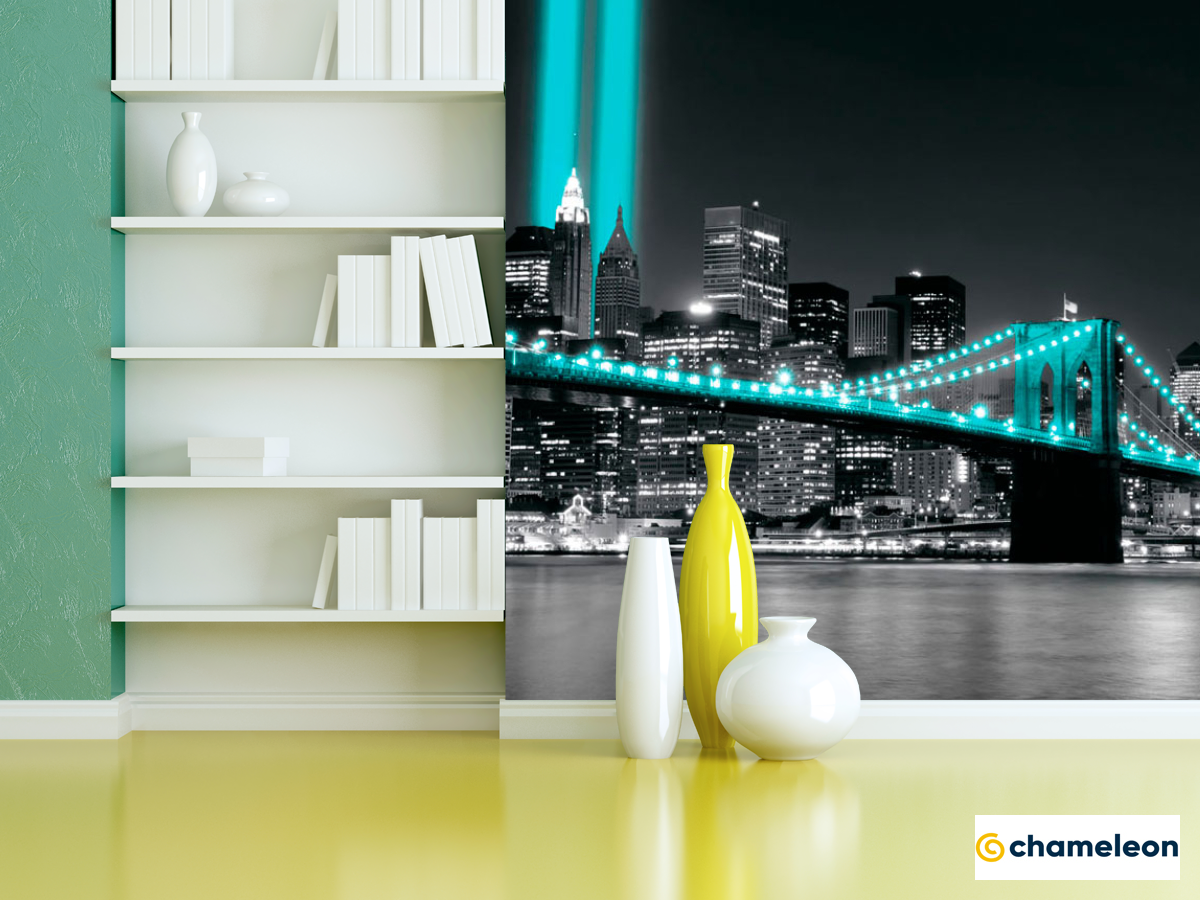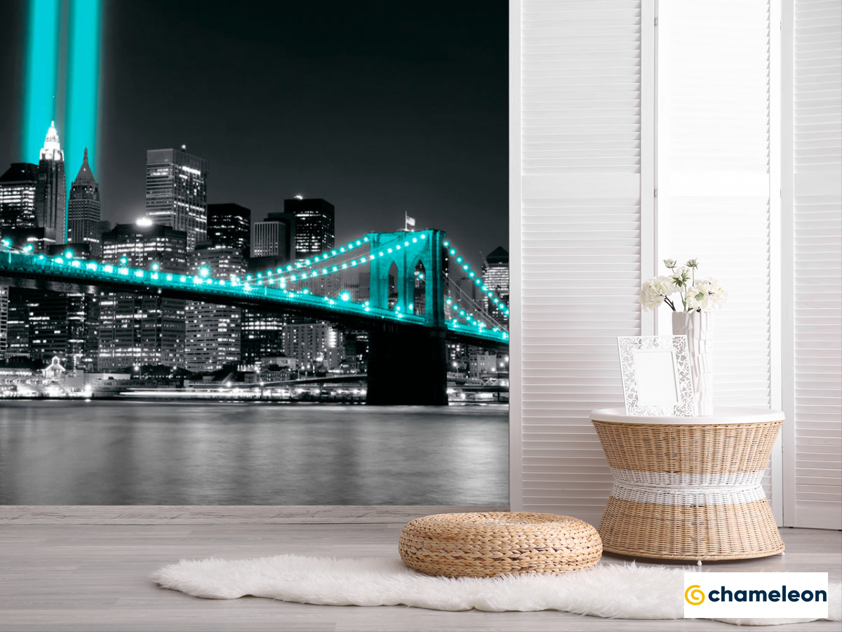 Фотошпалери «Фотошпалери Нічне місто у бірюзових вогнях», (арт. 20113) - купити в інтернет-магазині «Будинок Фотошпалер» Хамелеон