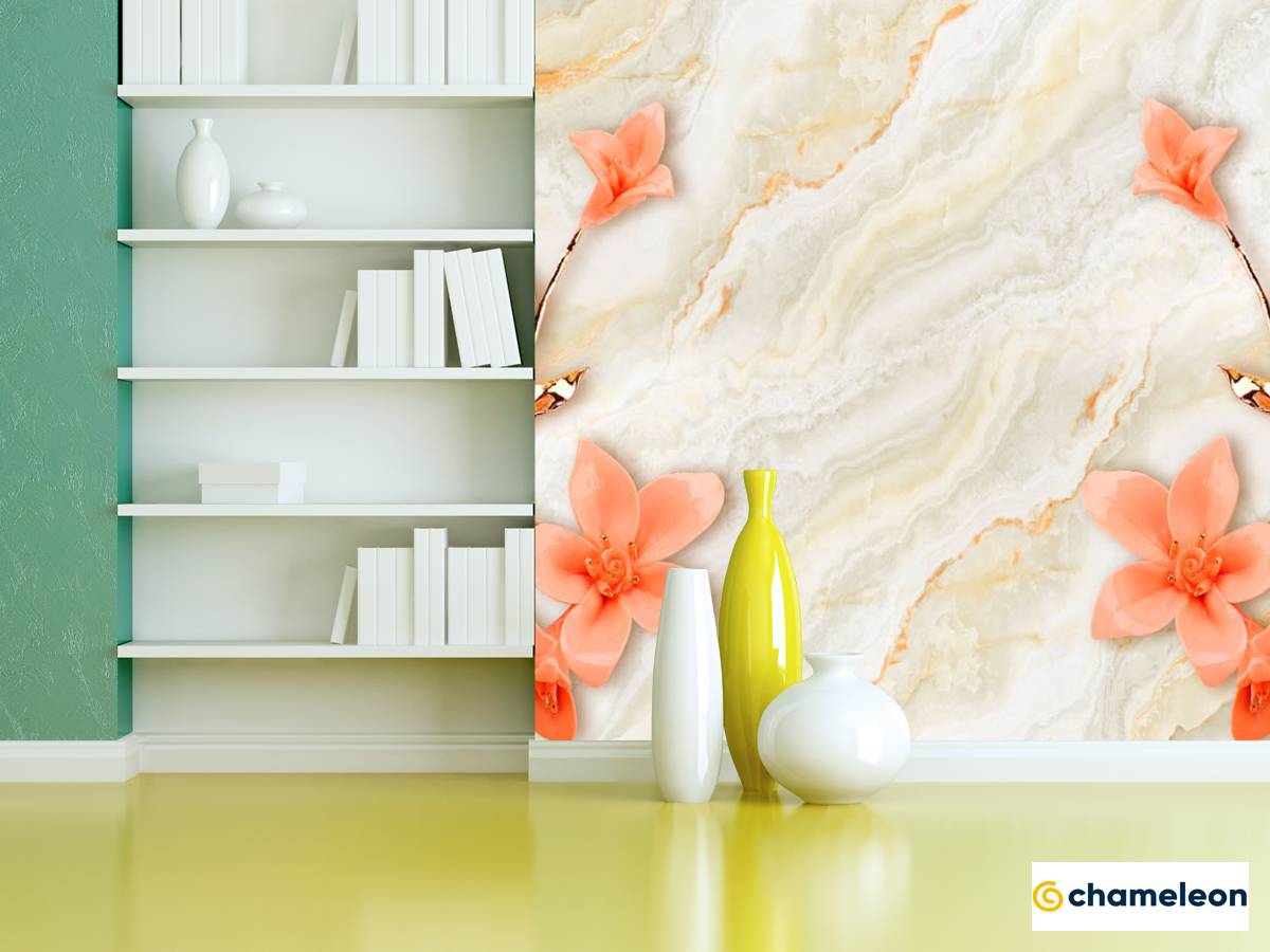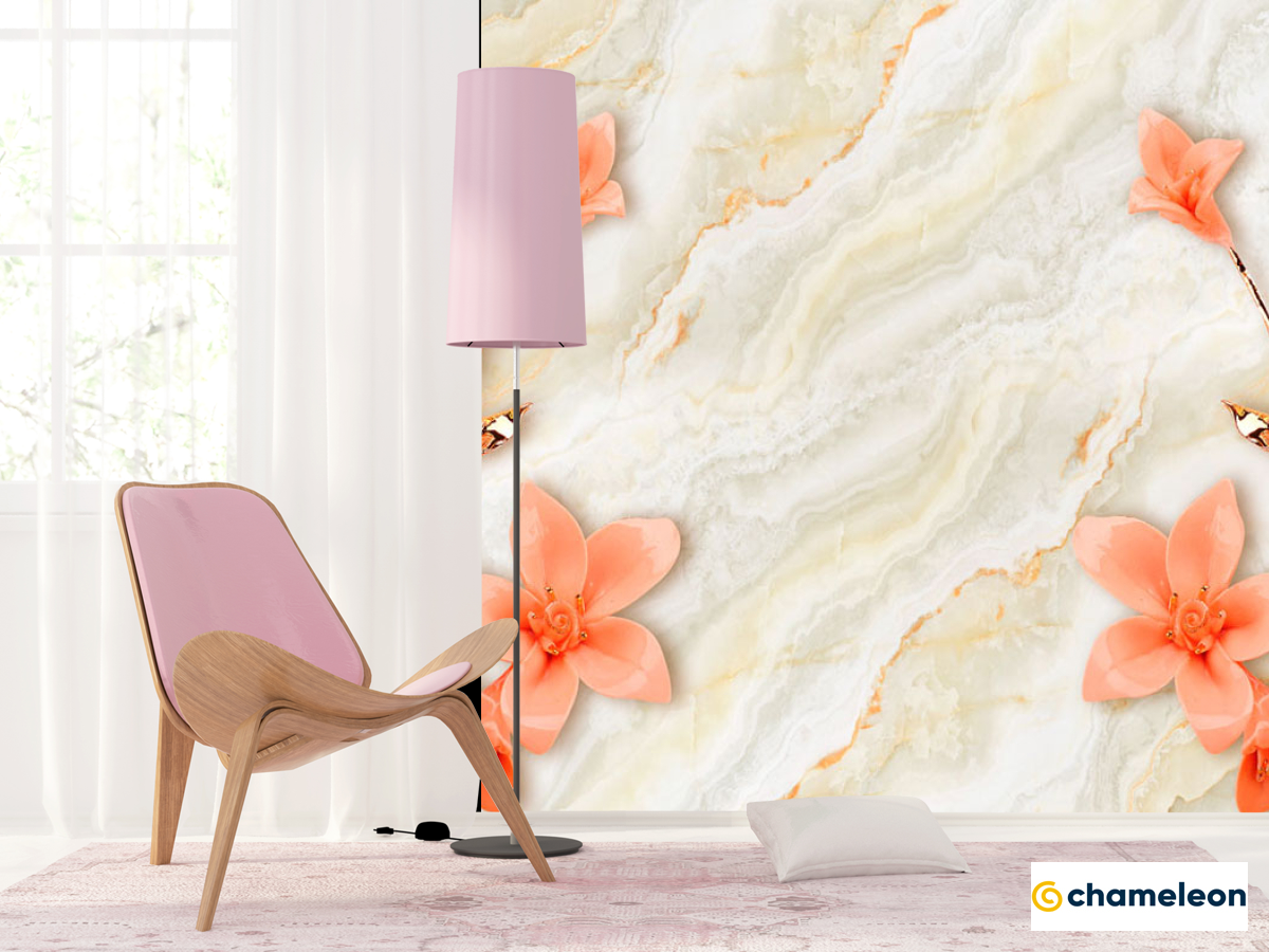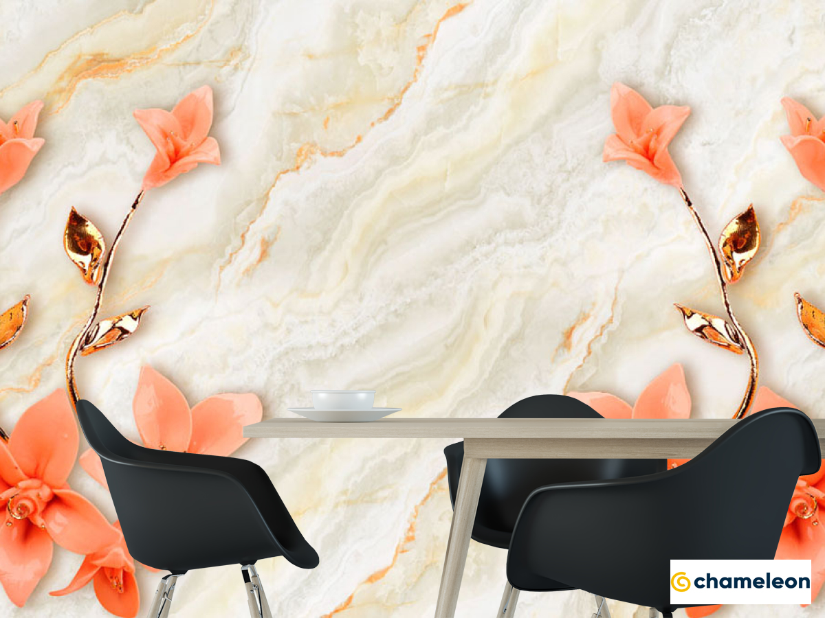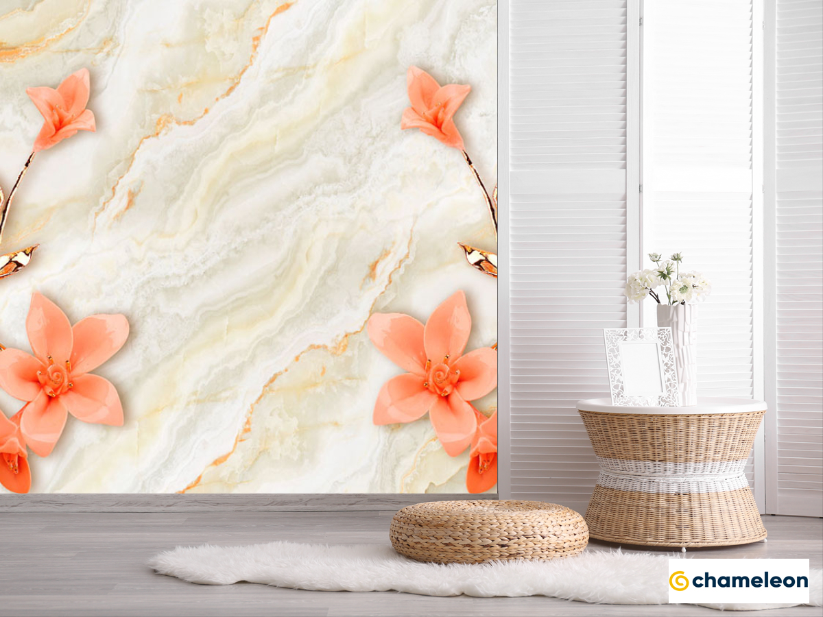 Фотошпалери «Фотошпалери Помаранчеві квіти з гілками», (арт. 20123) - купити в інтернет-магазині «Будинок Фотошпалер» Хамелеон