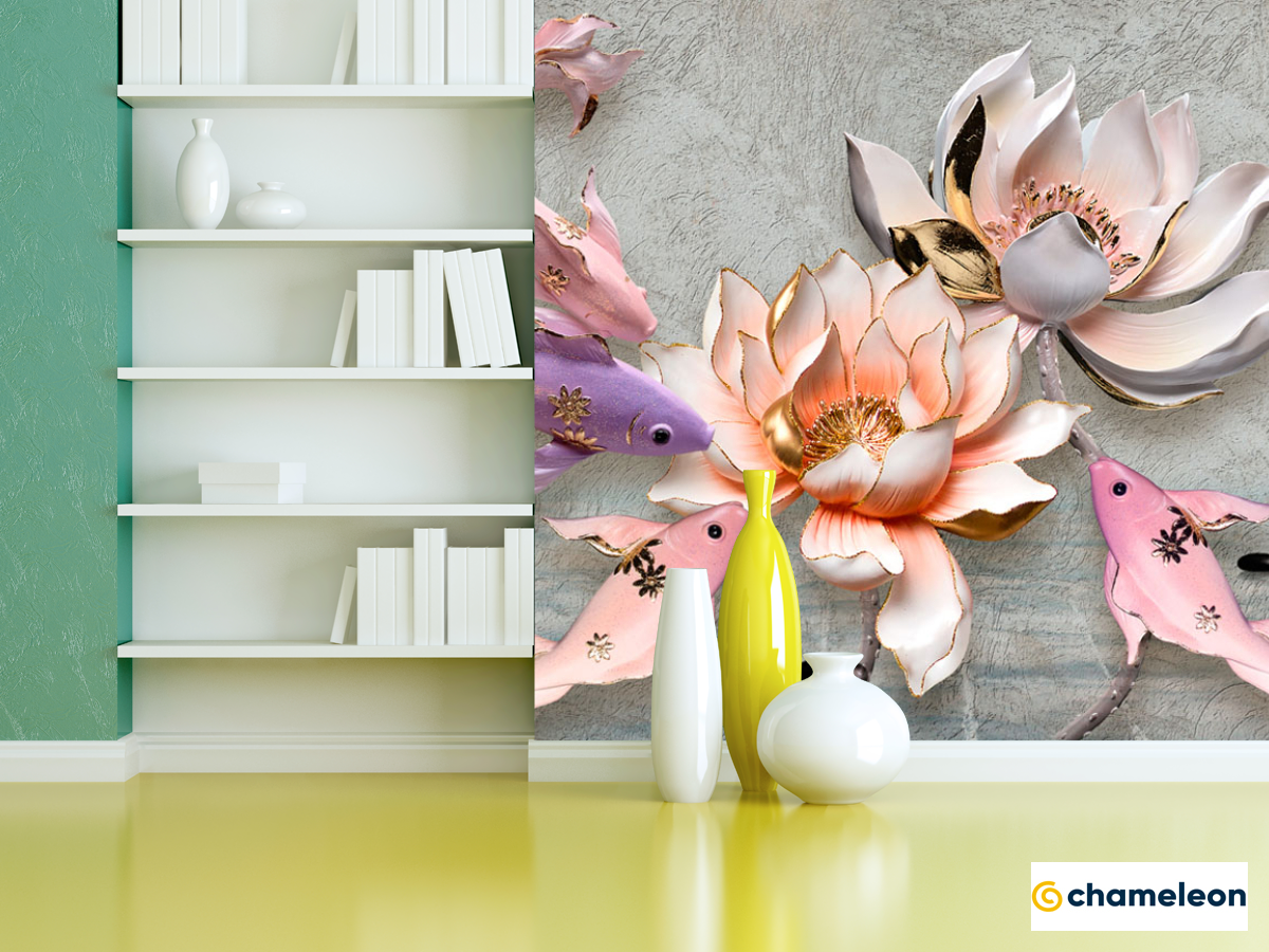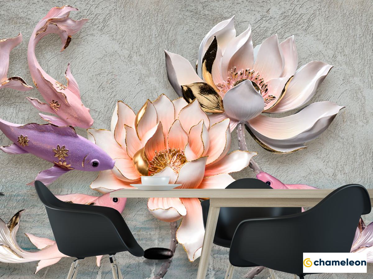 Фотошпалери «Фотошпалери Керамічні лотос і рибка», (арт. 20175) - купити в інтернет-магазині «Будинок Фотошпалер» Хамелеон