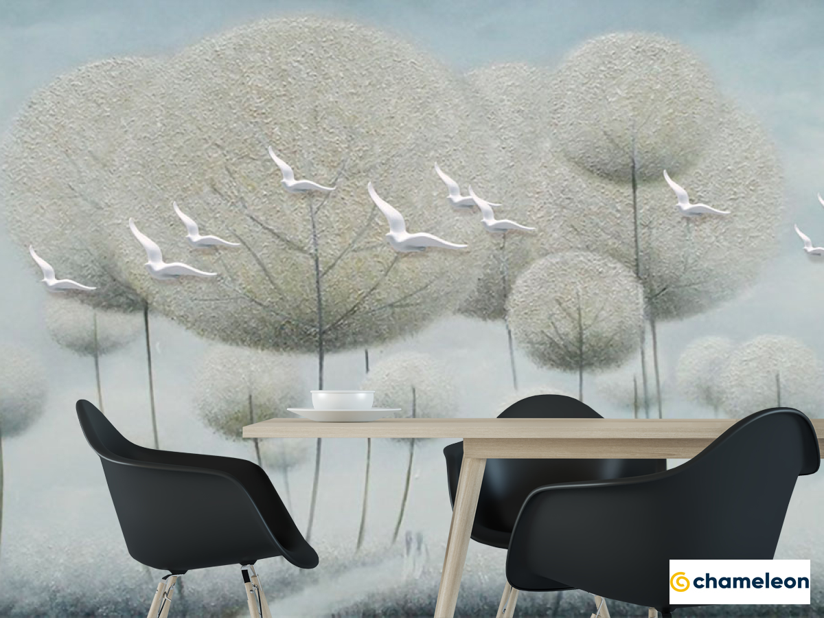 Фотошпалери «Фотошпалери Кульбаби з пташками барельєф», (арт. 20201) - купити в інтернет-магазині «Будинок Фотошпалер» Хамелеон