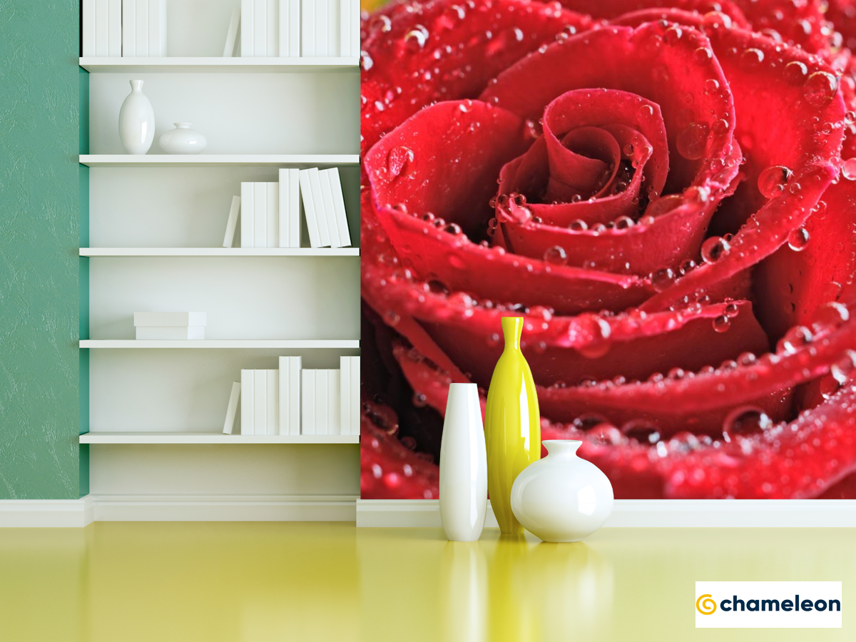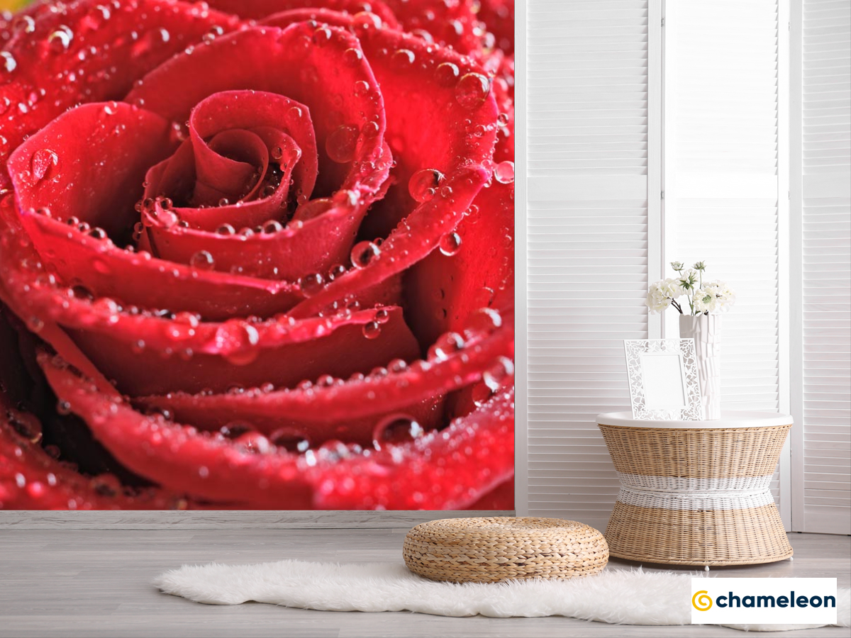 Фотошпалери «Фотошпалери червона троянда з краплями», (арт. 20376) - купити в інтернет-магазині «Будинок Фотошпалер» Хамелеон