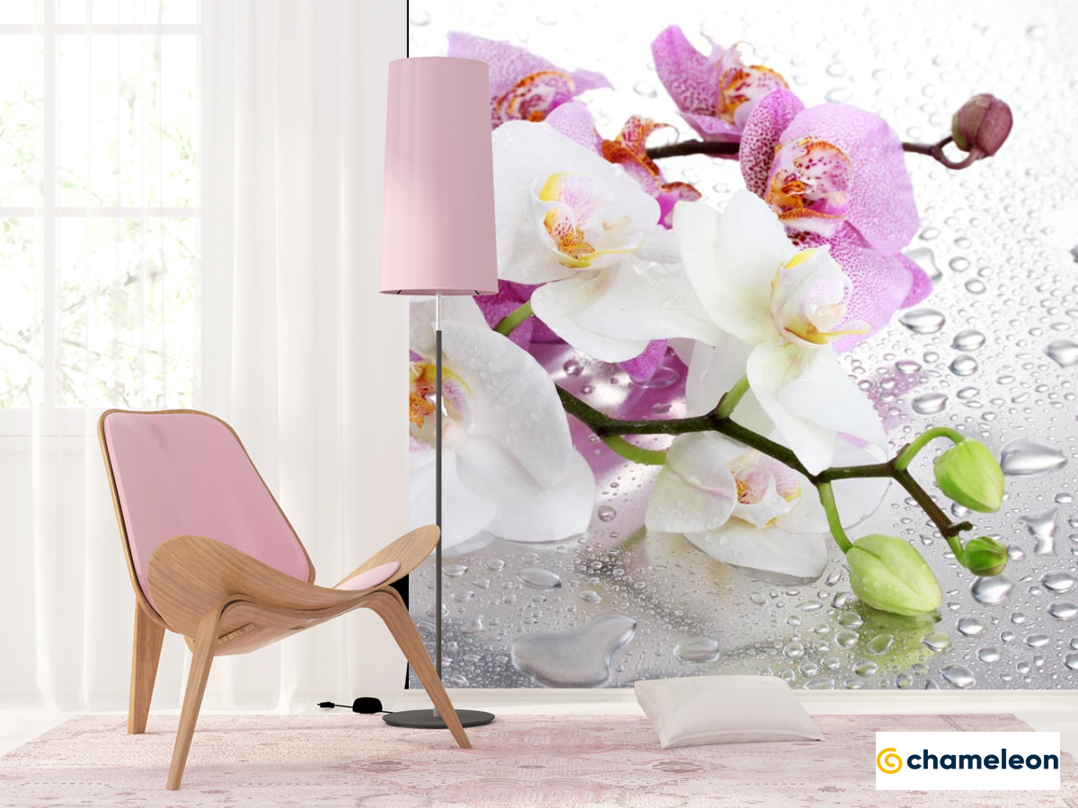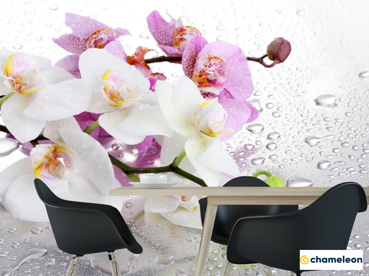 Фотошпалери орхідеї на тлі краплями з