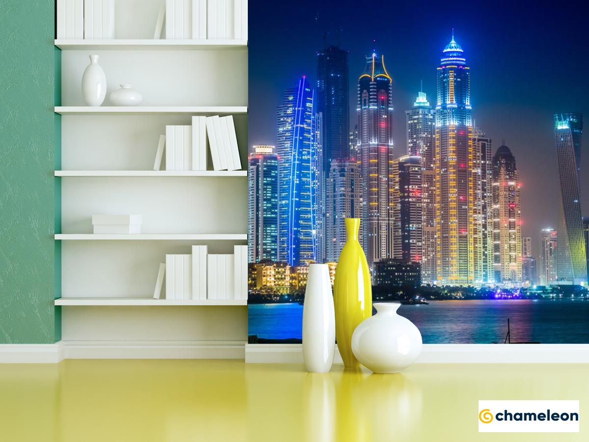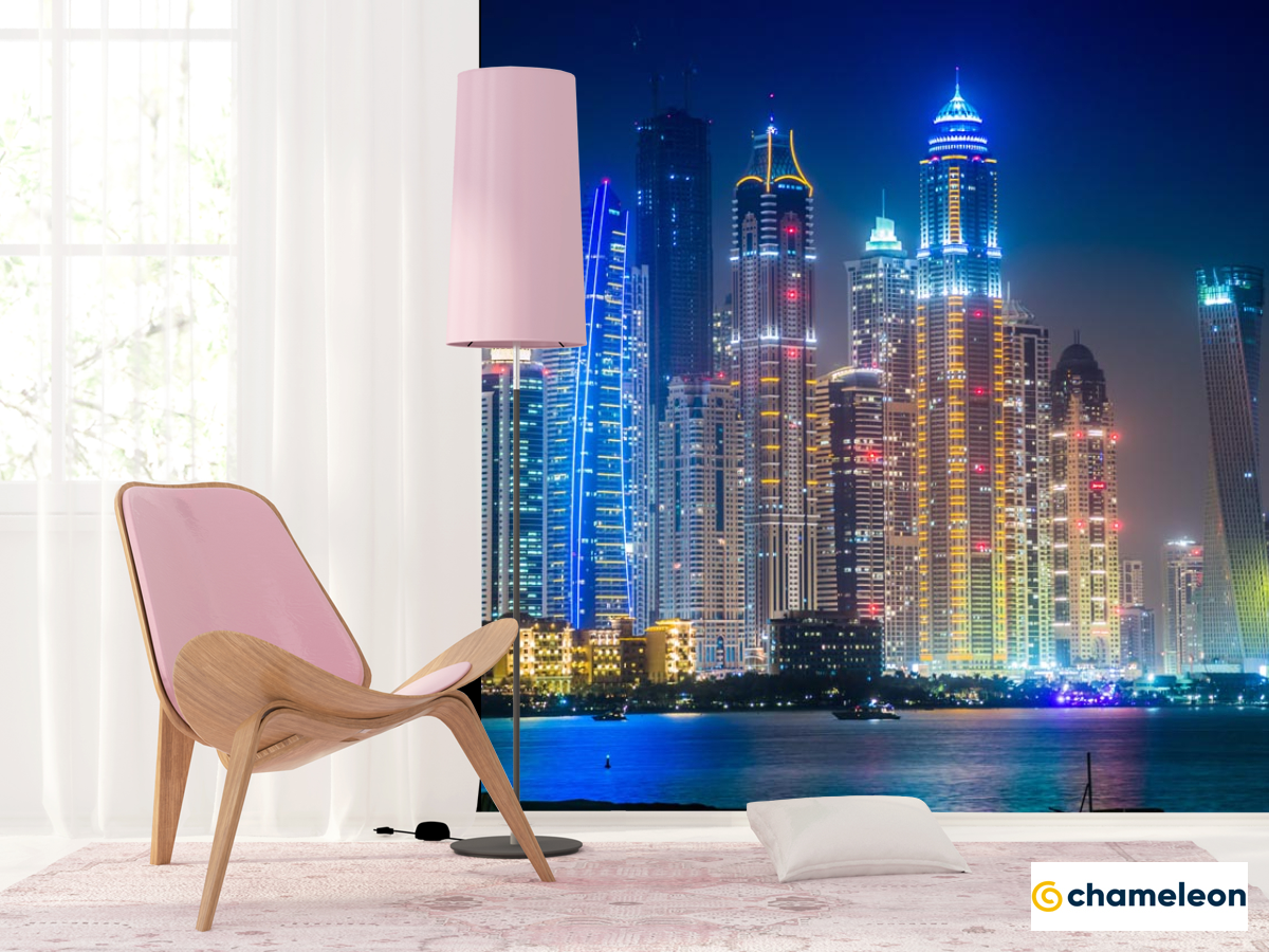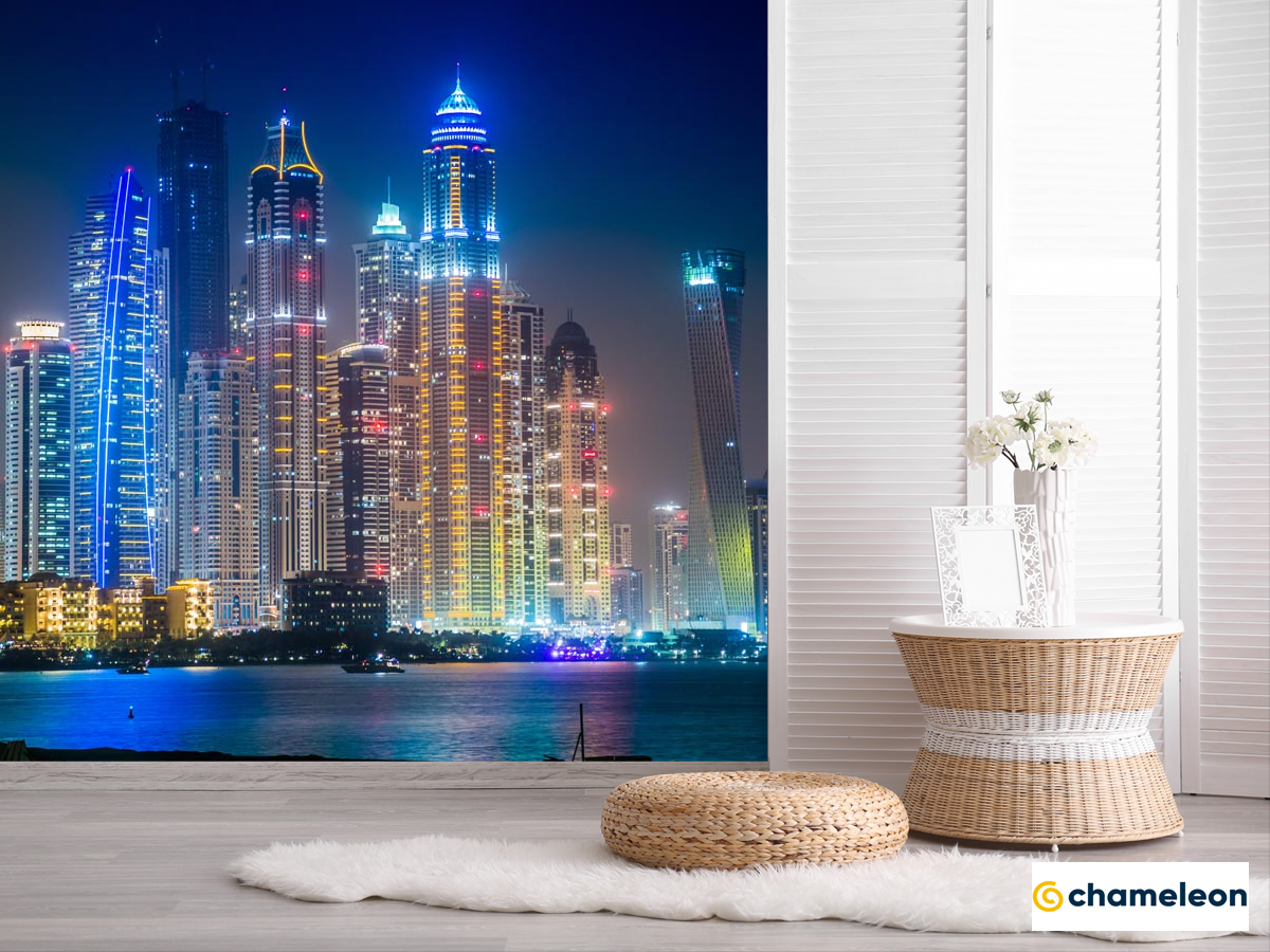 Фотошпалери «Фотошпалери сині вогні вечірнього міста», (арт. 20615) - купити в інтернет-магазині «Будинок Фотошпалер» Хамелеон