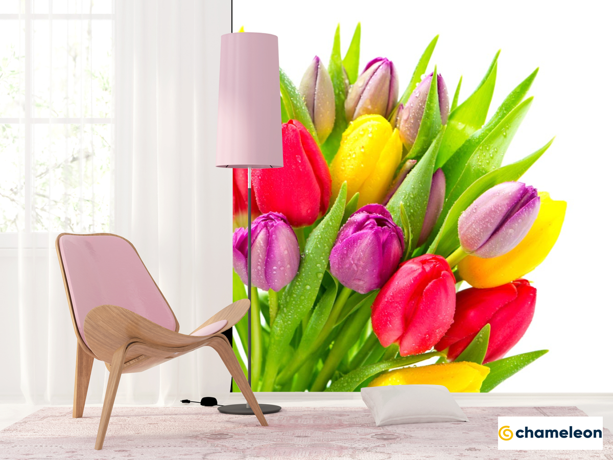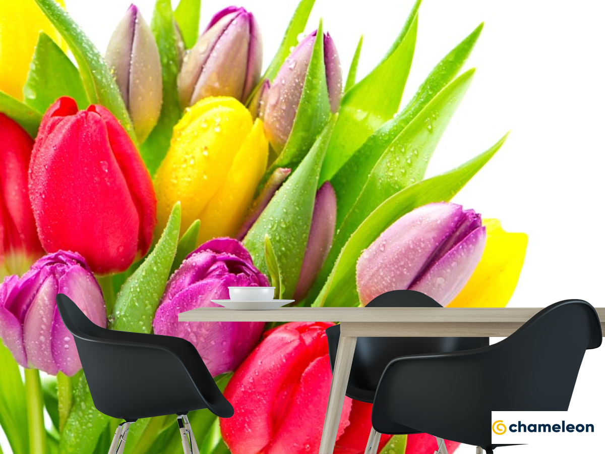 Фотошпалери «Фотошпалери різнокольорові тюльпани з краплями», (арт. 20671) - купити в інтернет-магазині «Будинок Фотошпалер» Хамелеон