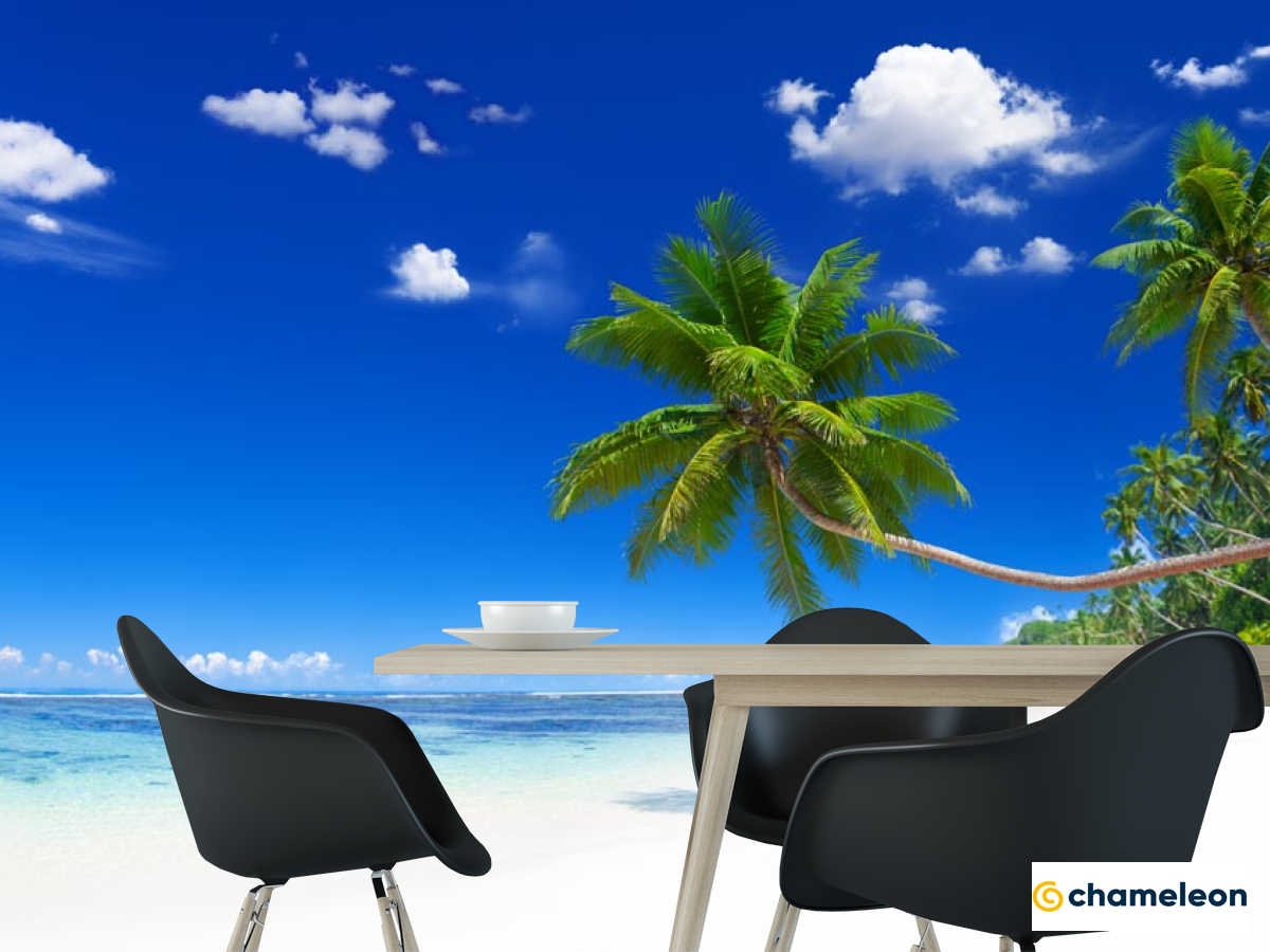 Фотошпалери «Фотошпалери Пальми, море і пісок білий», (арт. 20748) - купити в інтернет-магазині «Будинок Фотошпалер» Хамелеон