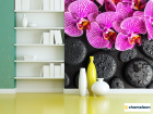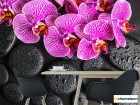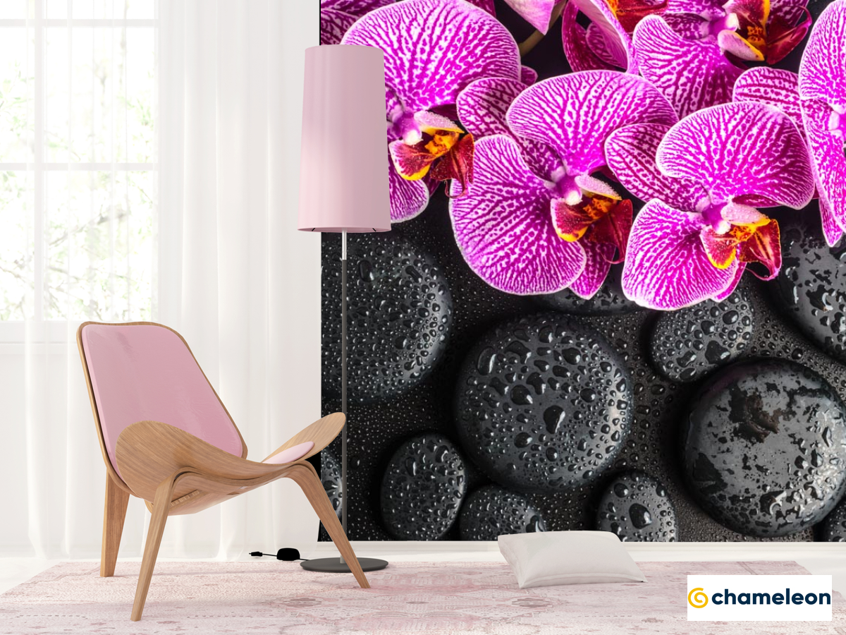 Фотошпалери «Фотошпалери бузкові орхідеї на чорних каменях з краплями», (арт. 20758) - купити в інтернет-магазині «Будинок Фотошпалер» Хамелеон