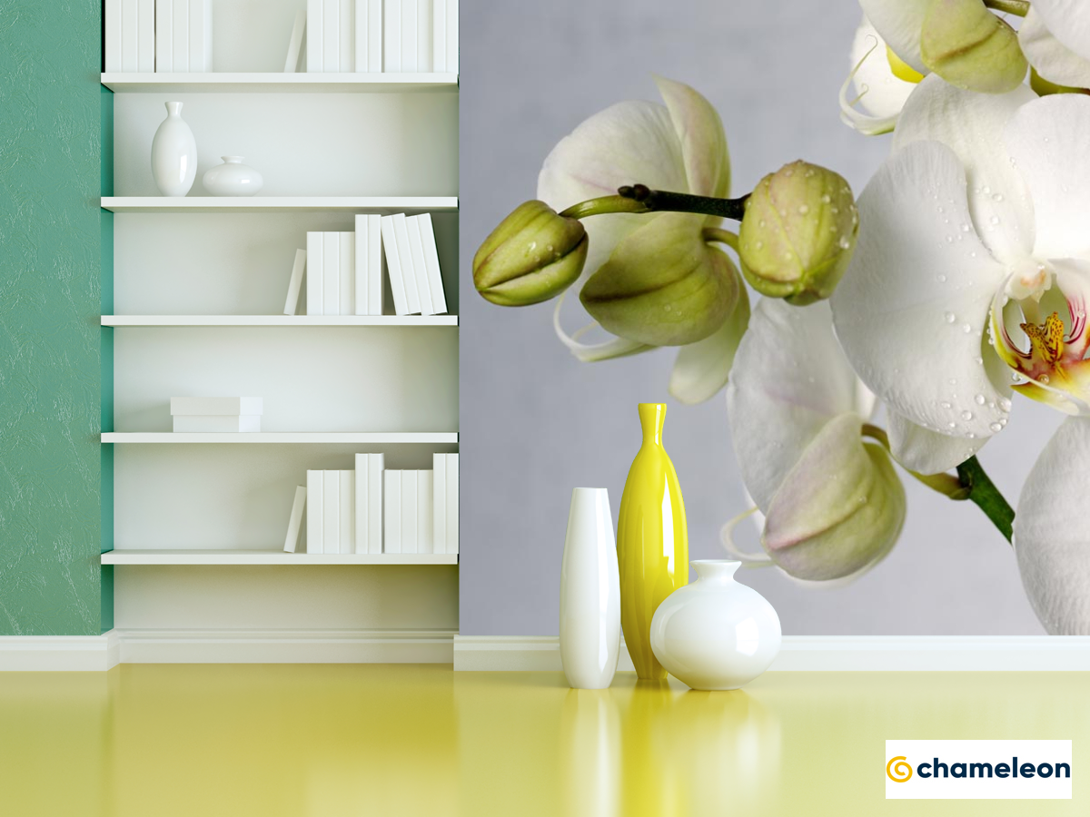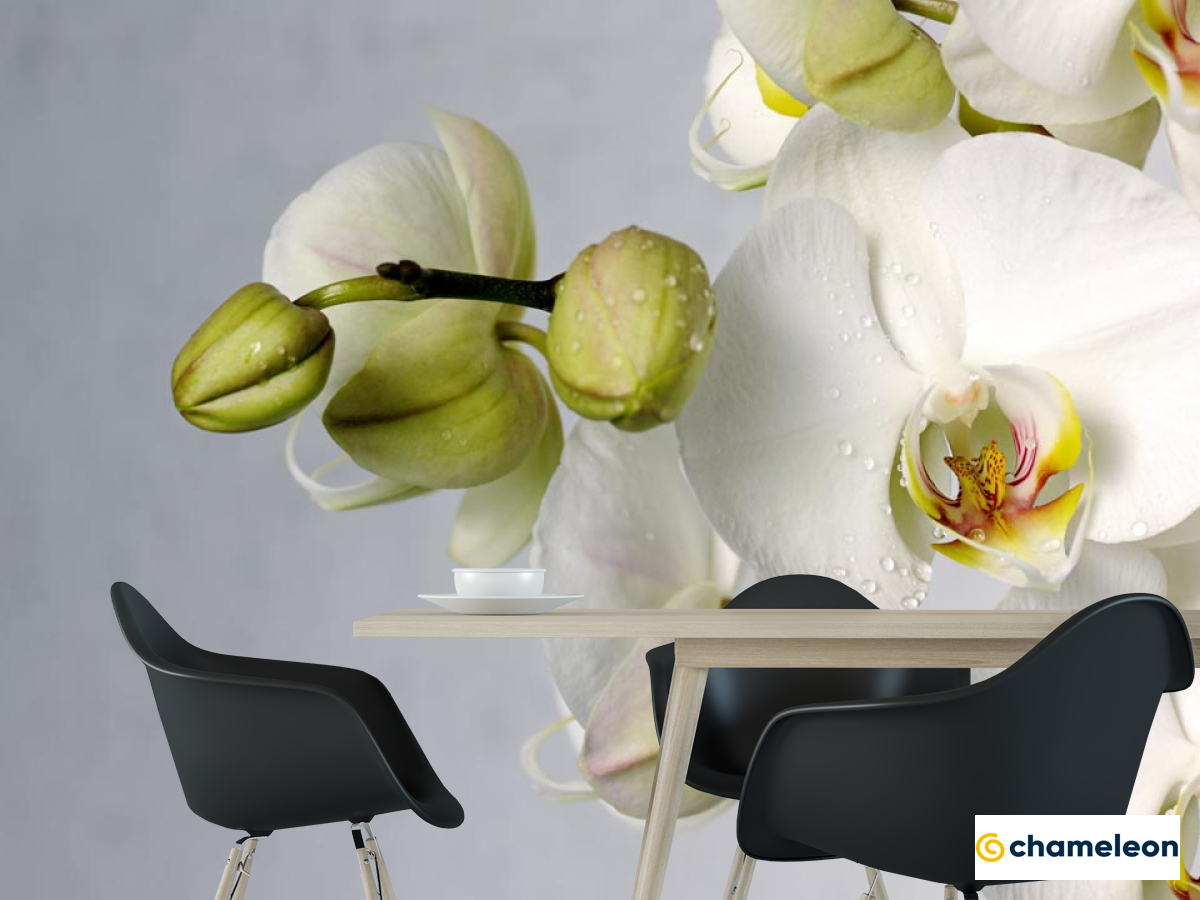 Фотошпалери «Фотошпалери велика біла орхідея з краплями», (арт. 20777) - купити в інтернет-магазині «Будинок Фотошпалер» Хамелеон