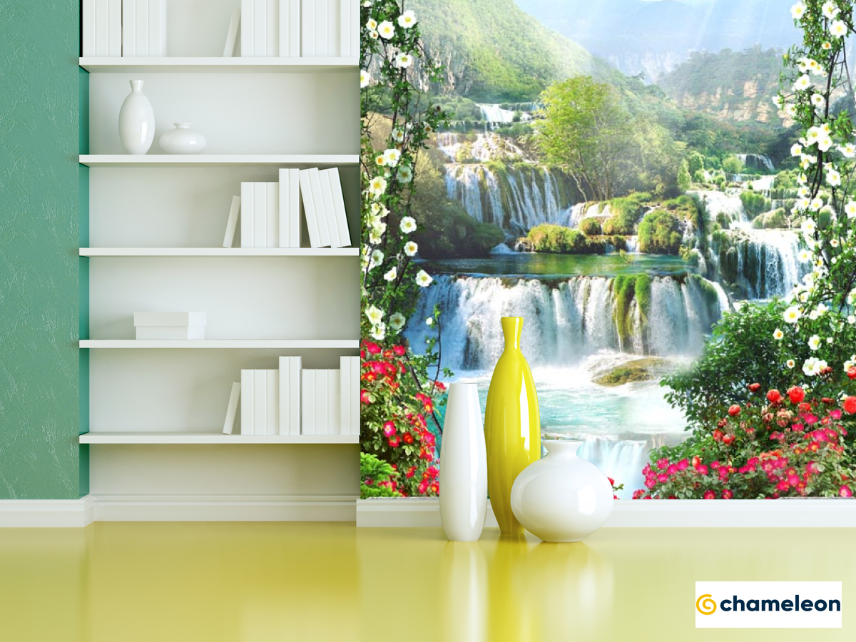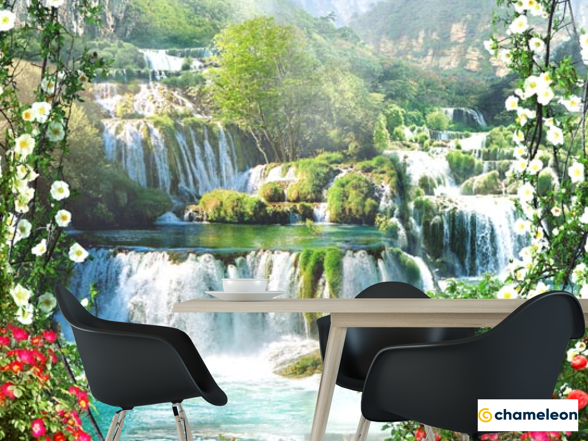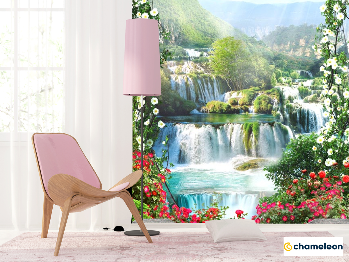 Фотошпалери «Фотошпалери водоспад за кам'яним парканом», (арт. 21091) - купити в інтернет-магазині «Будинок Фотошпалер» Хамелеон