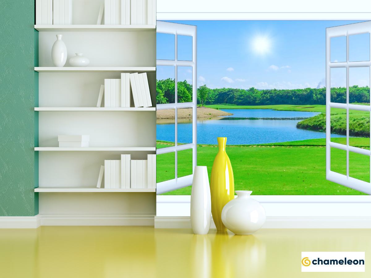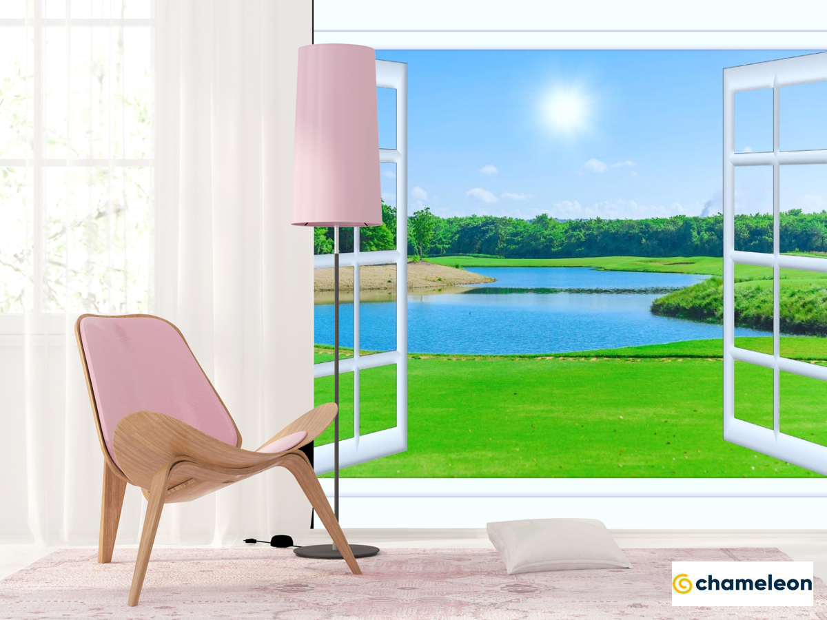Фотошпалери «Фотошпалери озеро за вікном», (арт. 21172) - купити в інтернет-магазині «Будинок Фотошпалер» Хамелеон