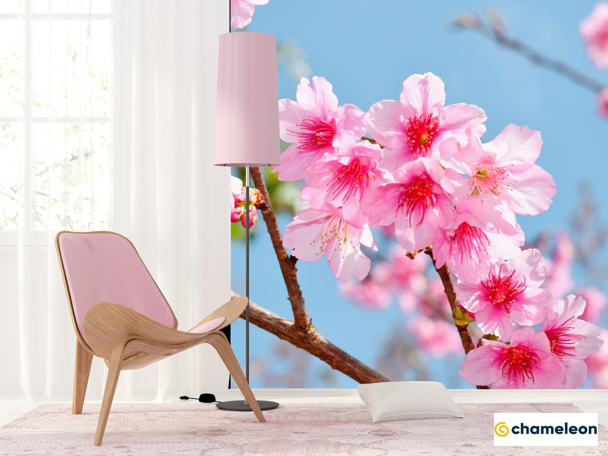 Фотошпалери «Фотошпалери яскраві рожеві квіточки на дереві», (арт. 21204) - купити в інтернет-магазині «Будинок Фотошпалер» Хамелеон