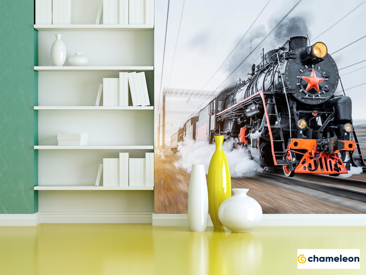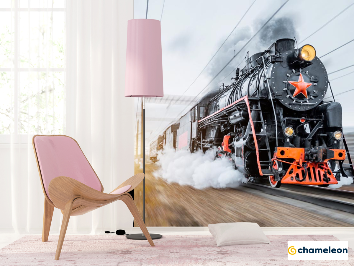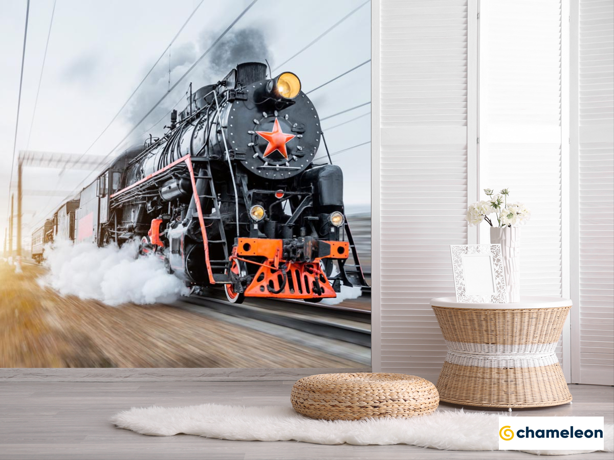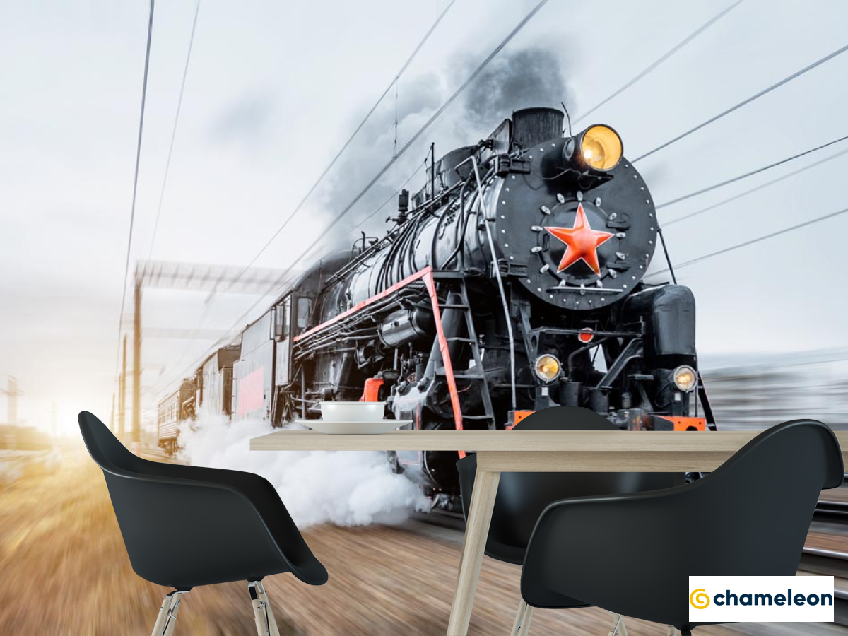 Фотошпалери «Фотошпалери паровоз в русі», (арт. 21306) - купити в інтернет-магазині «Будинок Фотошпалер» Хамелеон