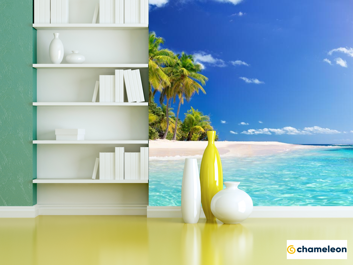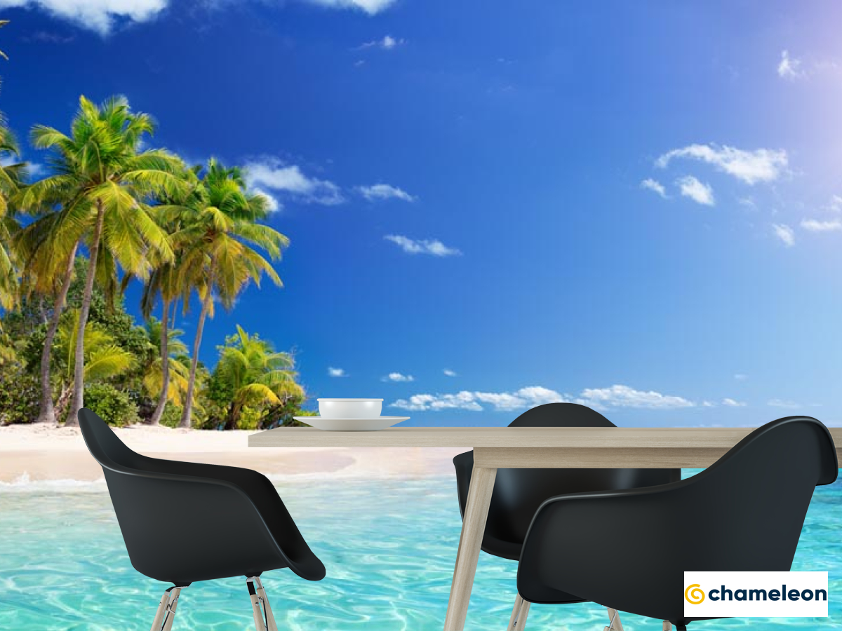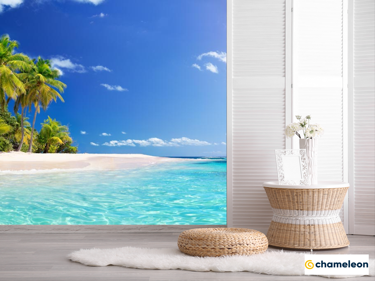 Фотошпалери «Фотошпалери Блакитне море і пальми», (арт. 21619) - купити в інтернет-магазині «Будинок Фотошпалер» Хамелеон