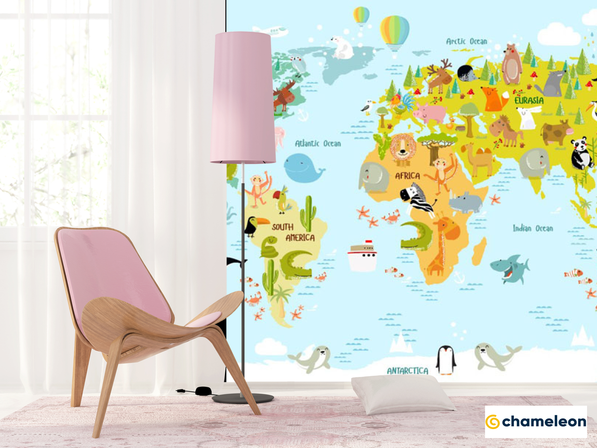 Фотошпалери «Фотошпалери карта світу в дитячу», (арт. 22029) - купити в інтернет-магазині «Будинок Фотошпалер» Хамелеон