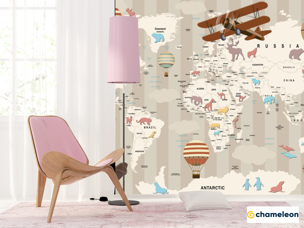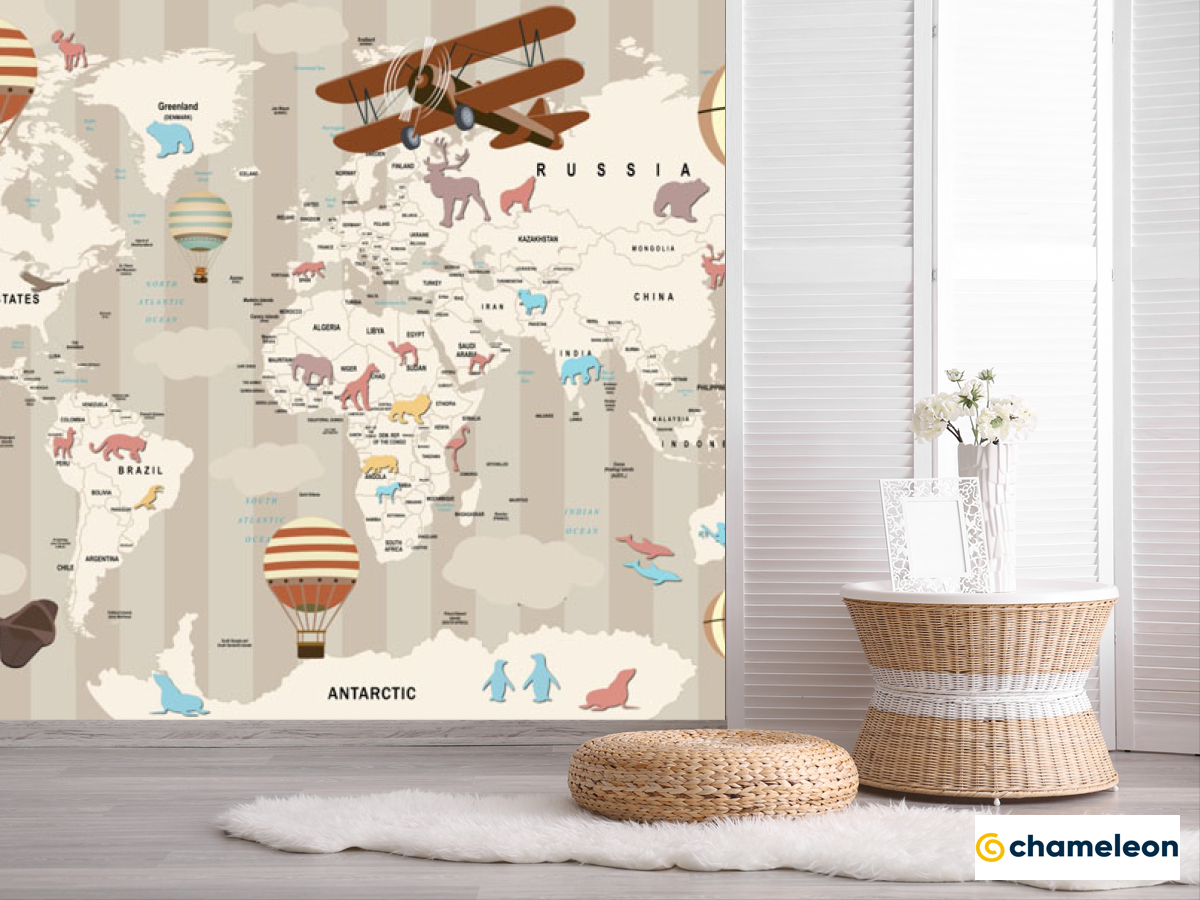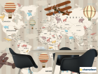 Фотошпалери «Фотообои карта мира с животными и самолетами», (арт. 22122) - купити в інтернет-магазині «Будинок Фотошпалер» Хамелеон
