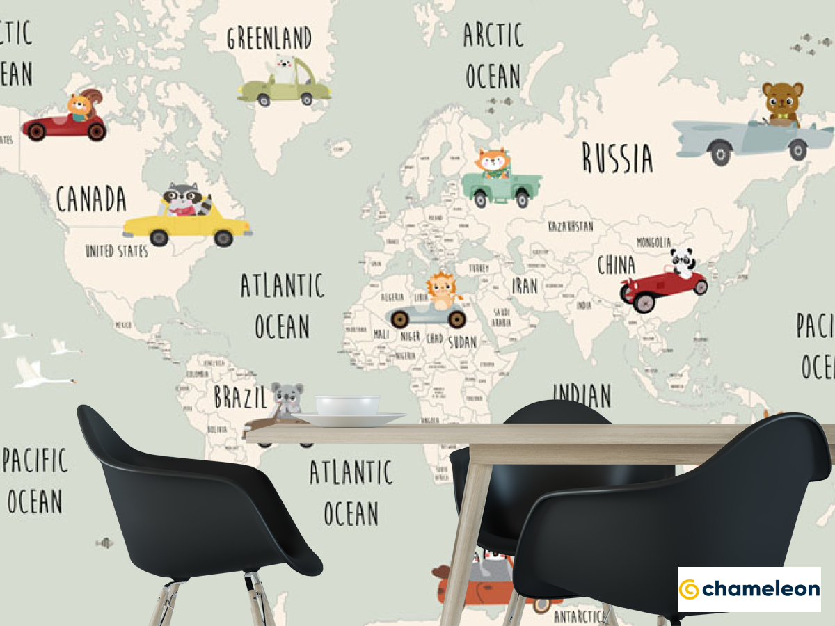 Фотошпалери Дитяча карта з машинками для хлопчика англійською