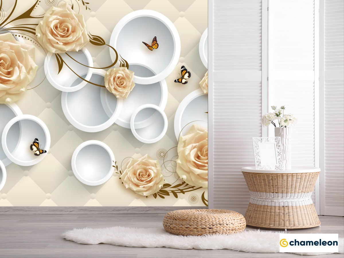 Фотошпалери «Фотошпалери Жовті троянди 3д», (арт. 22157) - купити в інтернет-магазині «Будинок Фотошпалер» Хамелеон