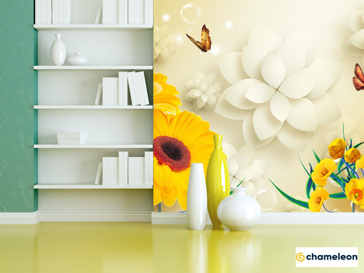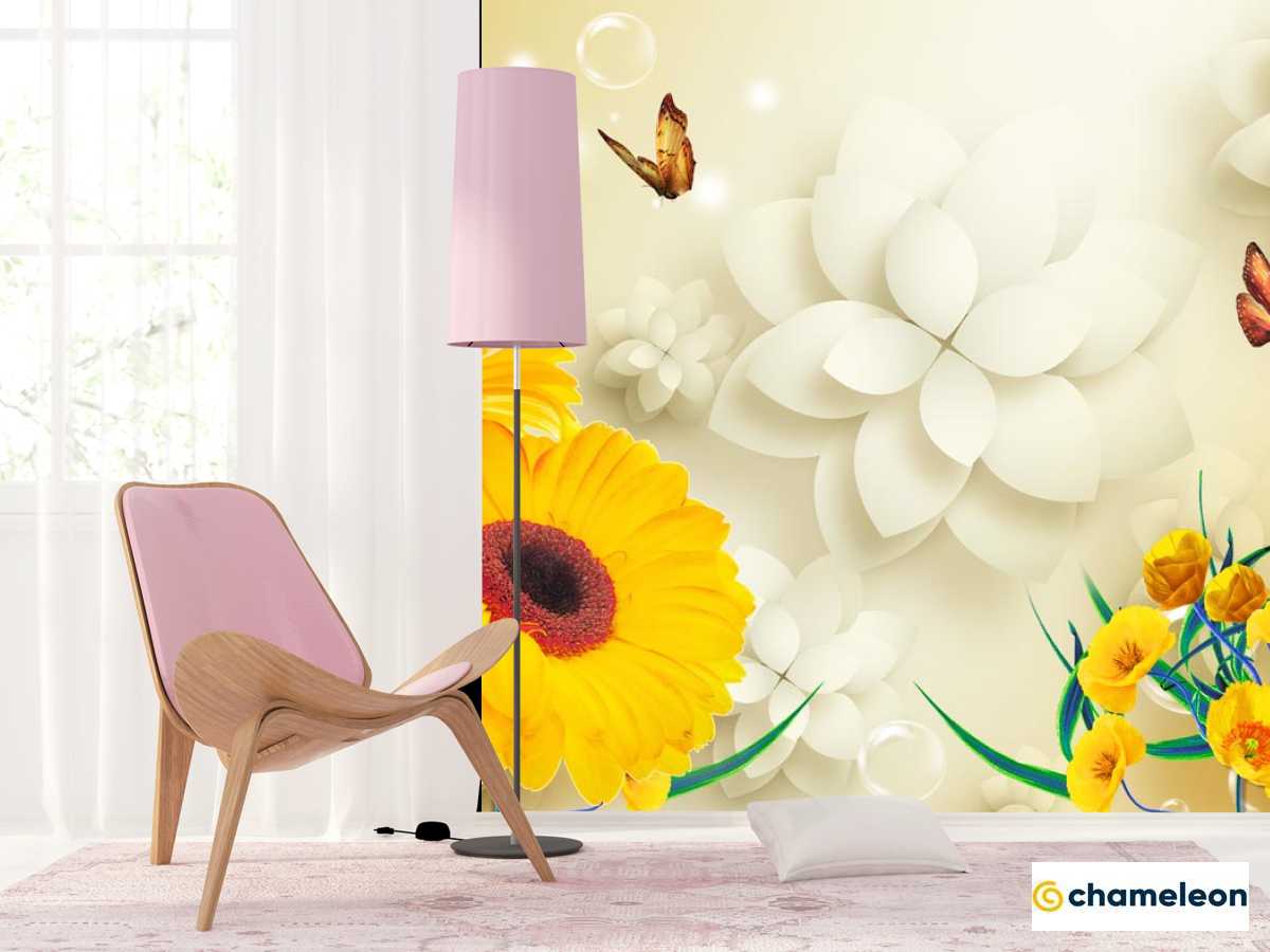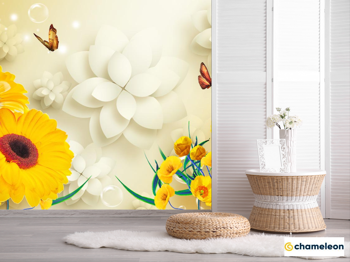 Фотошпалери «Фотошпалери Жовті гербери 3д», (арт. 22158) - купити в інтернет-магазині «Будинок Фотошпалер» Хамелеон
