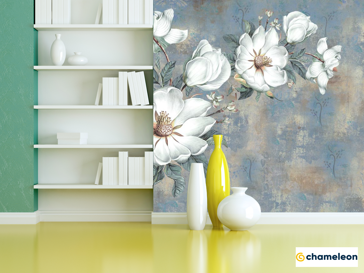Фотошпалери «Фотошпалери Білі квіти на блакитному тлі», (арт. 22180) - купити в інтернет-магазині «Будинок Фотошпалер» Хамелеон