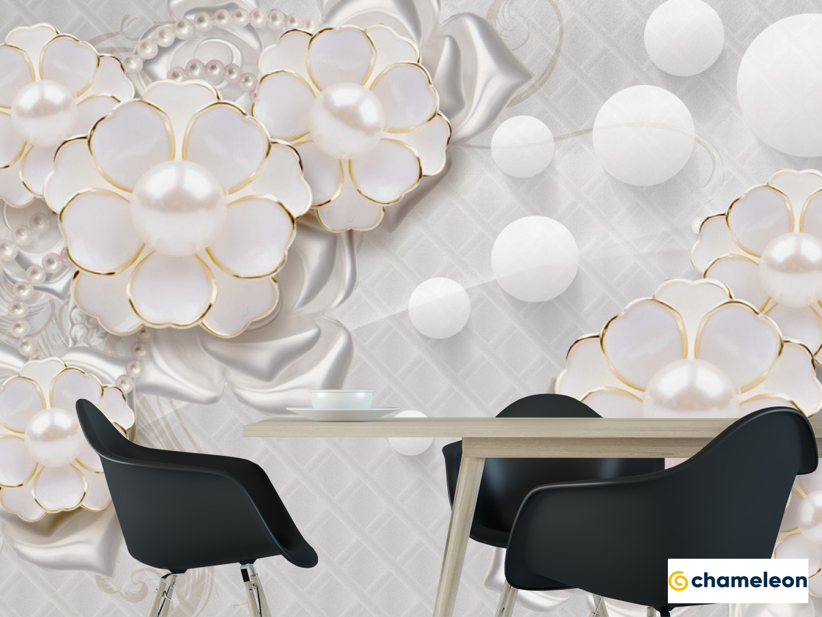Фотошпалери «Фотошпалери Білі квіти з перлами», (арт. 22181) - купити в інтернет-магазині «Будинок Фотошпалер» Хамелеон