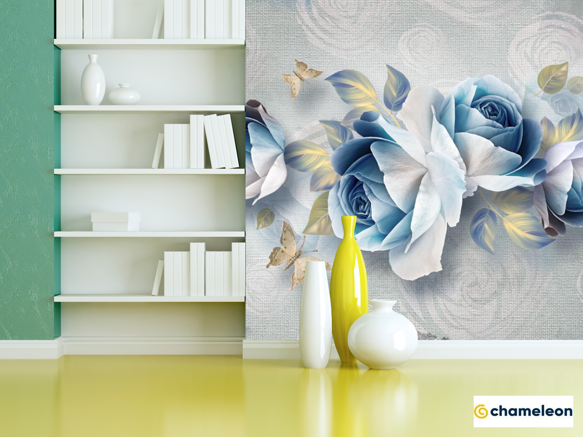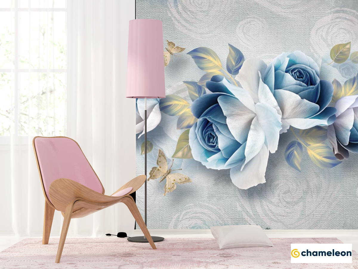 Фотошпалери «Фотошпалери Сині квіти 3д», (арт. 22281) - купити в інтернет-магазині «Будинок Фотошпалер» Хамелеон