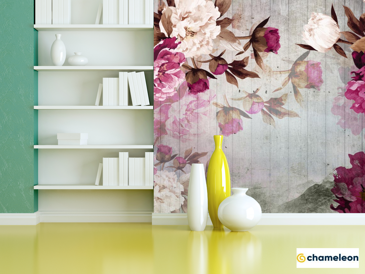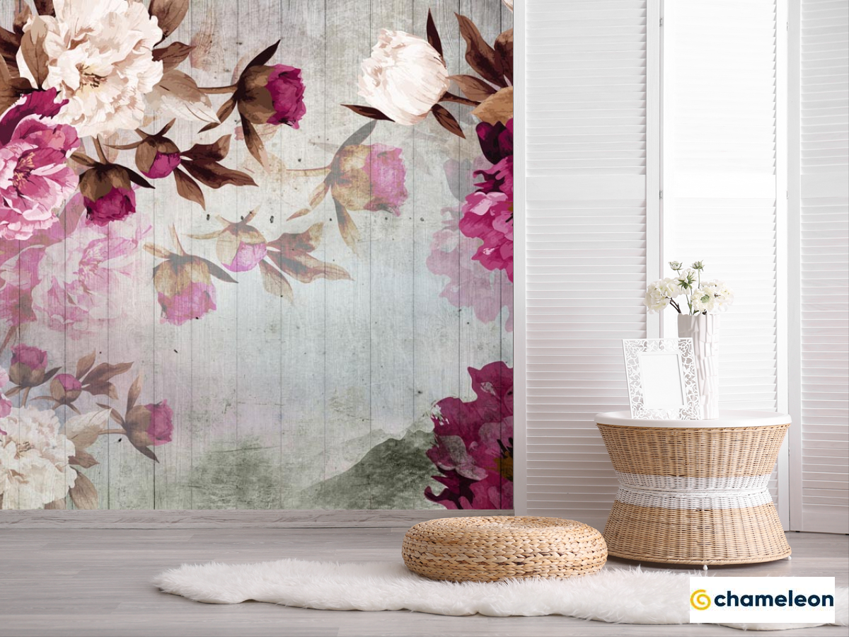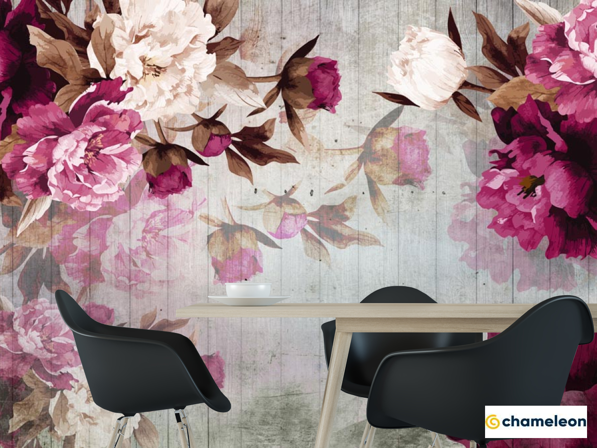 Фотошпалери «Фотошпалери Вінтажні бордові півонії», (арт. 22341) - купити в інтернет-магазині «Будинок Фотошпалер» Хамелеон
