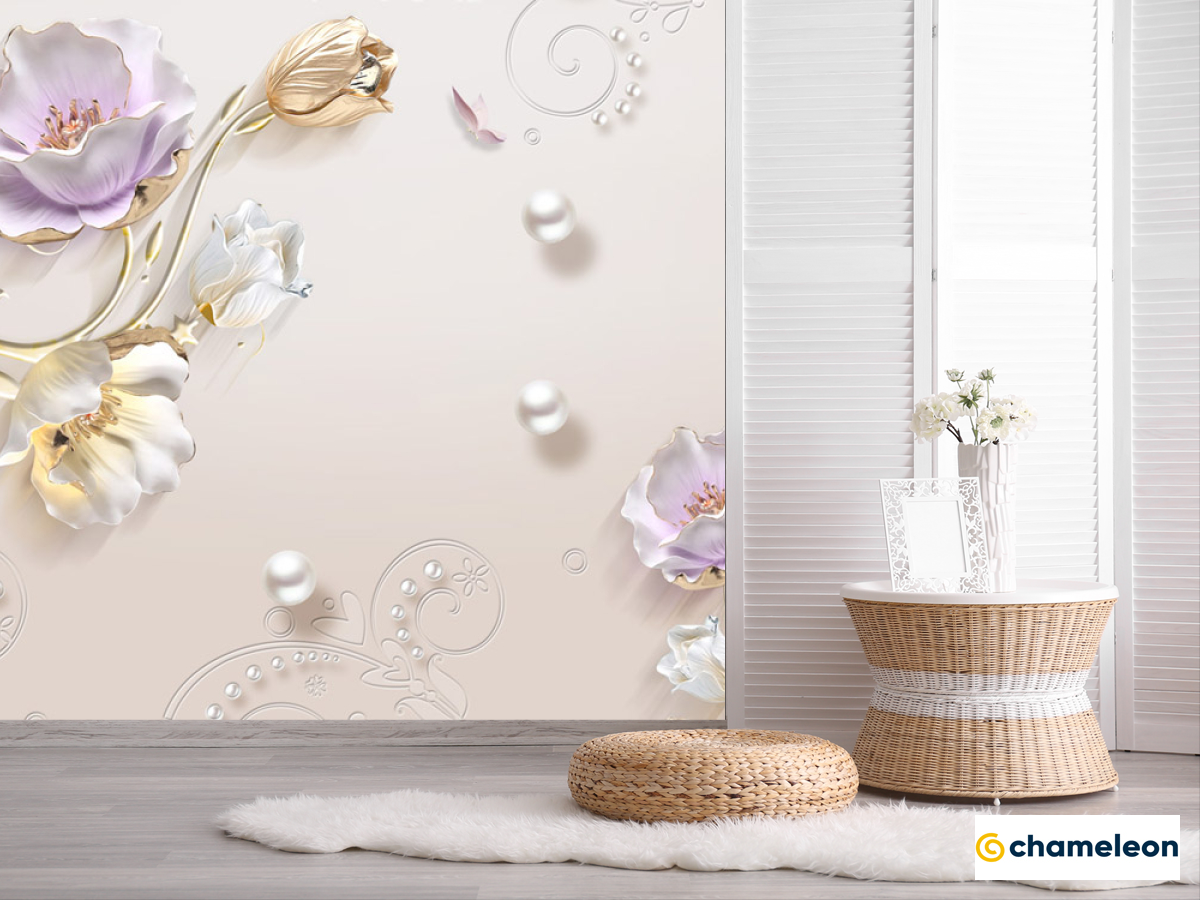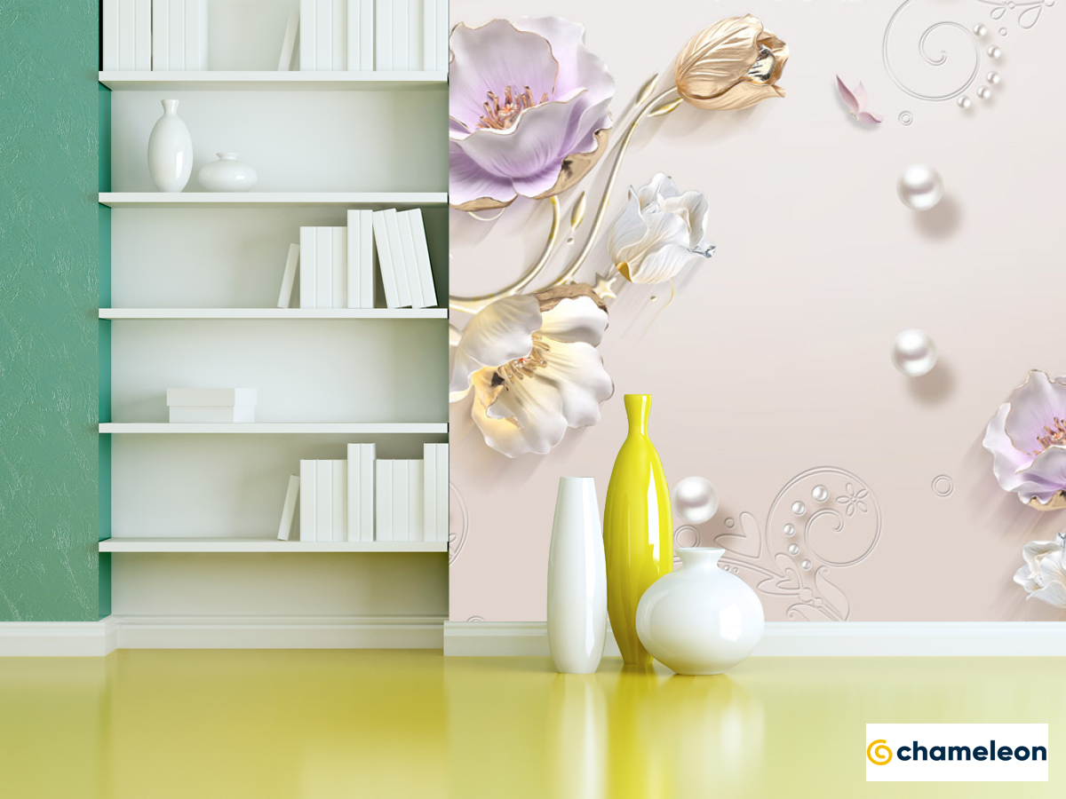 Фотошпалери «Фотошпалери Керамичесике квіти з золотими ніжками», (арт. 22347) - купити в інтернет-магазині «Будинок Фотошпалер» Хамелеон