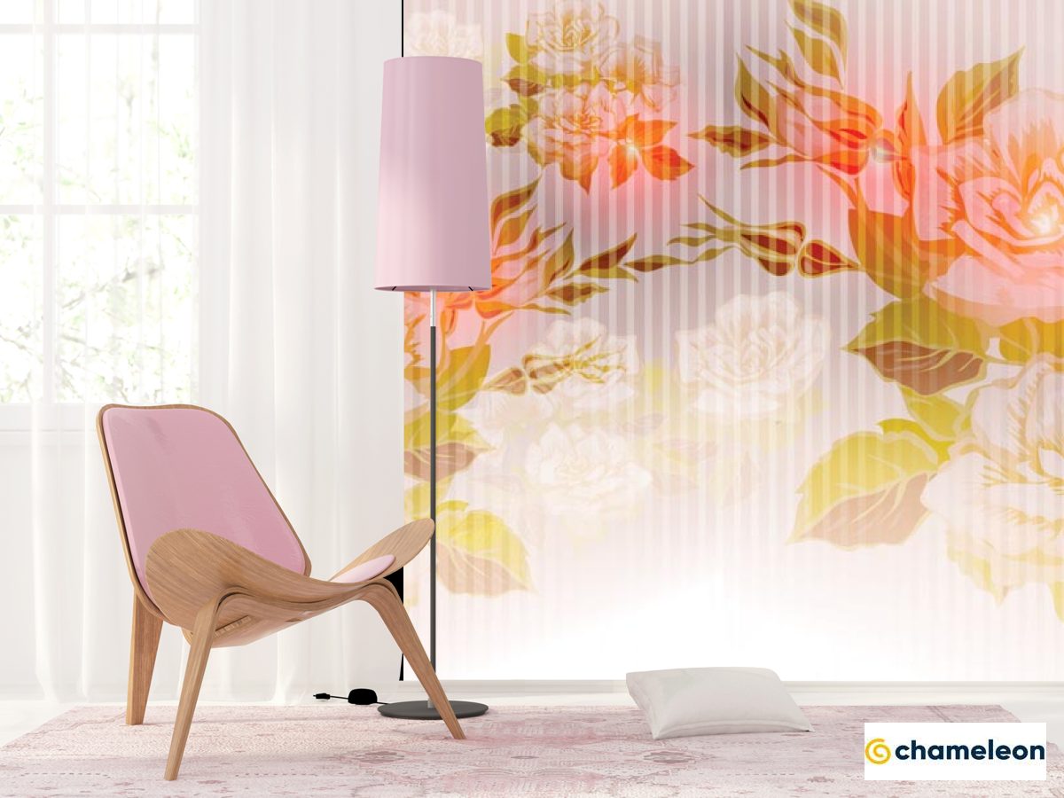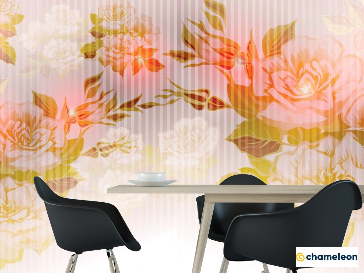 Фотошпалери «Фотошпалери Помаранчевий принт з квітами», (арт. 22358) - купити в інтернет-магазині «Будинок Фотошпалер» Хамелеон