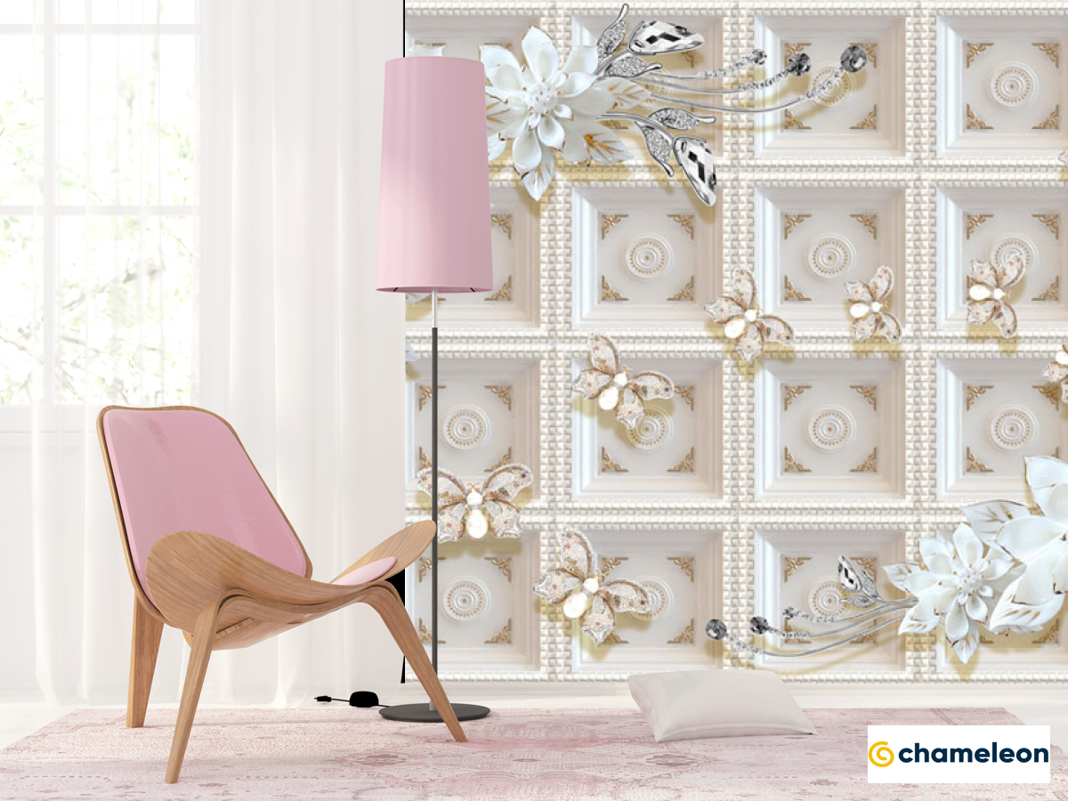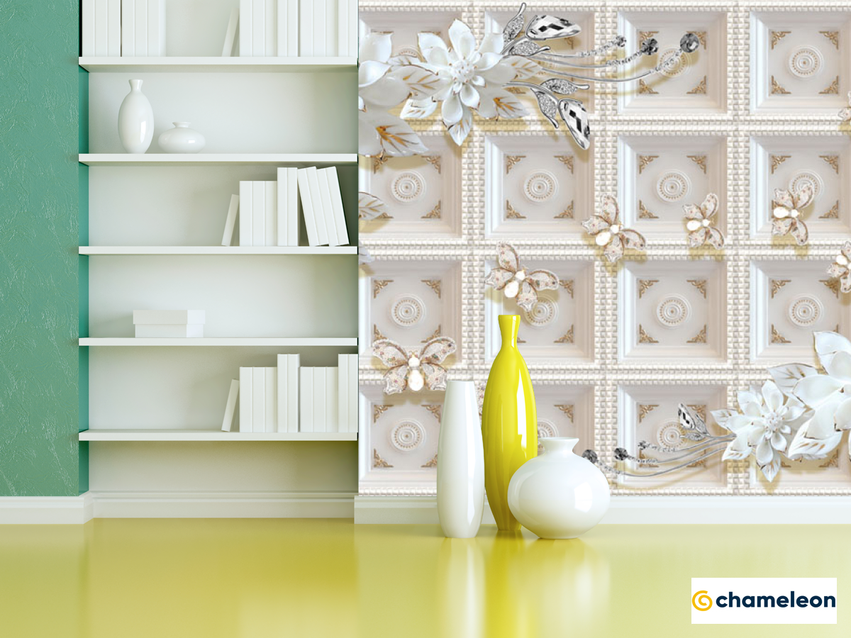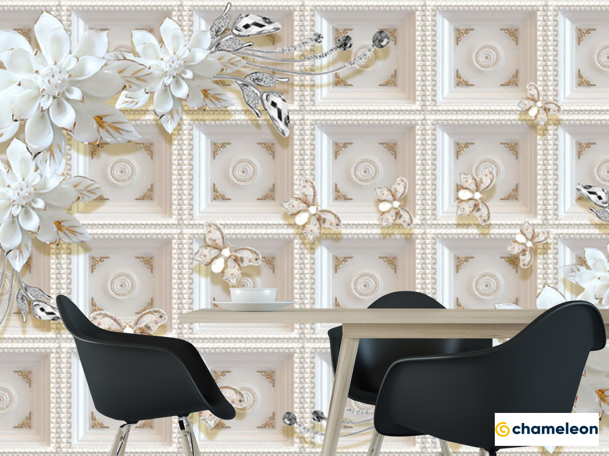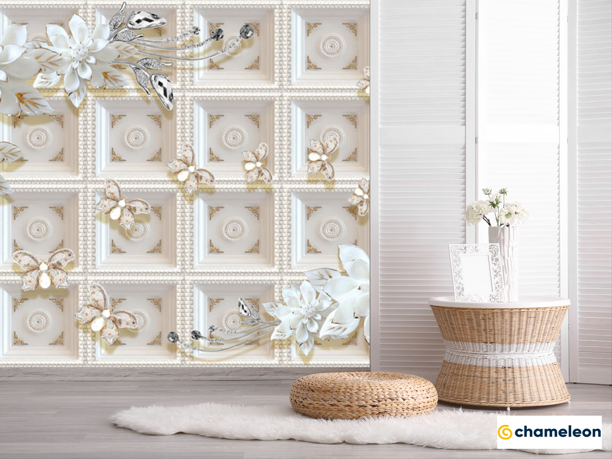 Фотошпалери «Фотошпалери Керамічні квіти на тлі золотий стіни», (арт. 22570) - купити в інтернет-магазині «Будинок Фотошпалер» Хамелеон