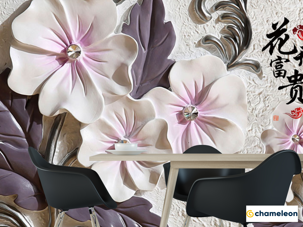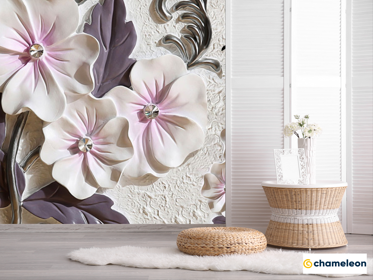 Фотошпалери «Фотошпалери Барельєфні керамічні квіти», (арт. 22915) - купити в інтернет-магазині «Будинок Фотошпалер» Хамелеон
