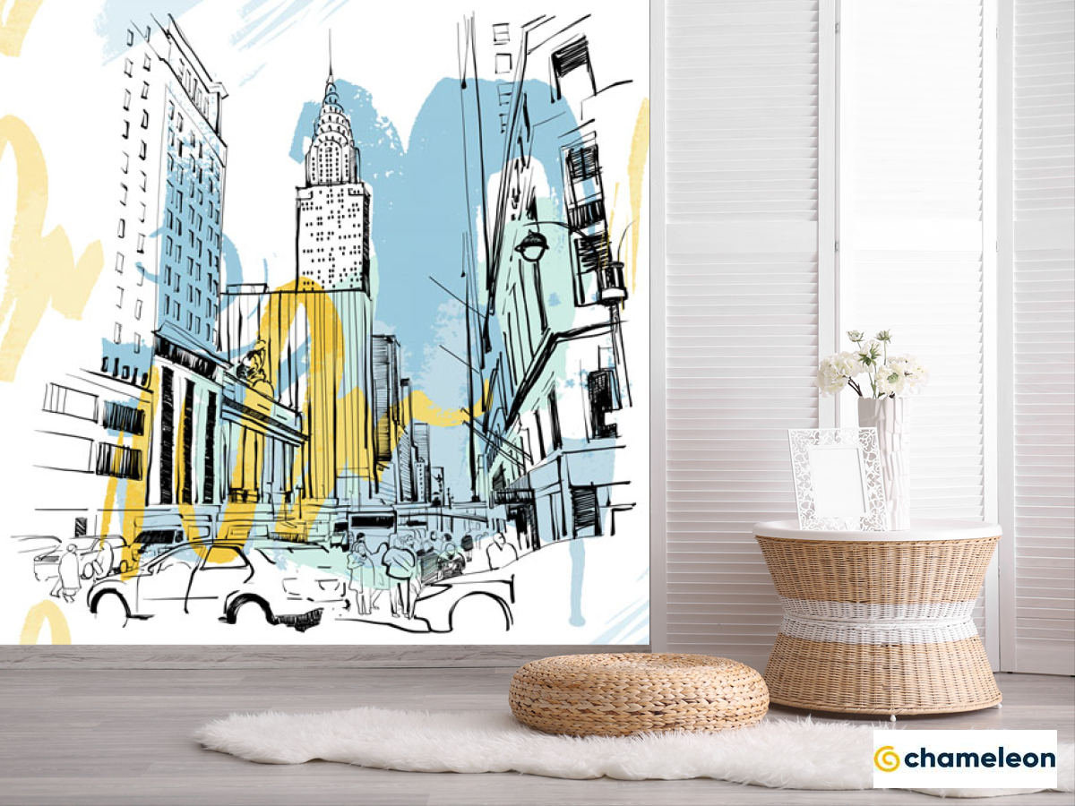 Фотошпалери «Фотошпалери Місто в стилі ілюстрацій», (арт. 22924) - купити в інтернет-магазині «Будинок Фотошпалер» Хамелеон