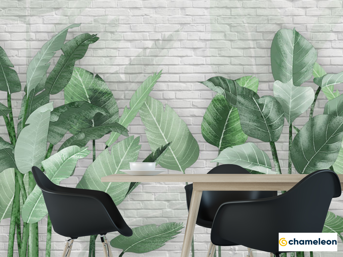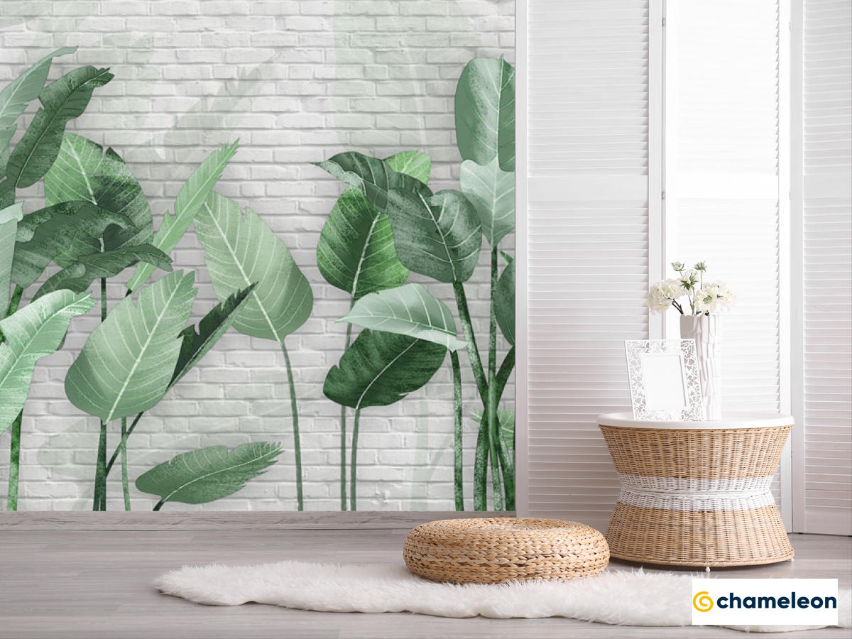 Фотошпалери «Фотошпалери Бананові листя на тлі цегляному», (арт. 22946) - купити в інтернет-магазині «Будинок Фотошпалер» Хамелеон