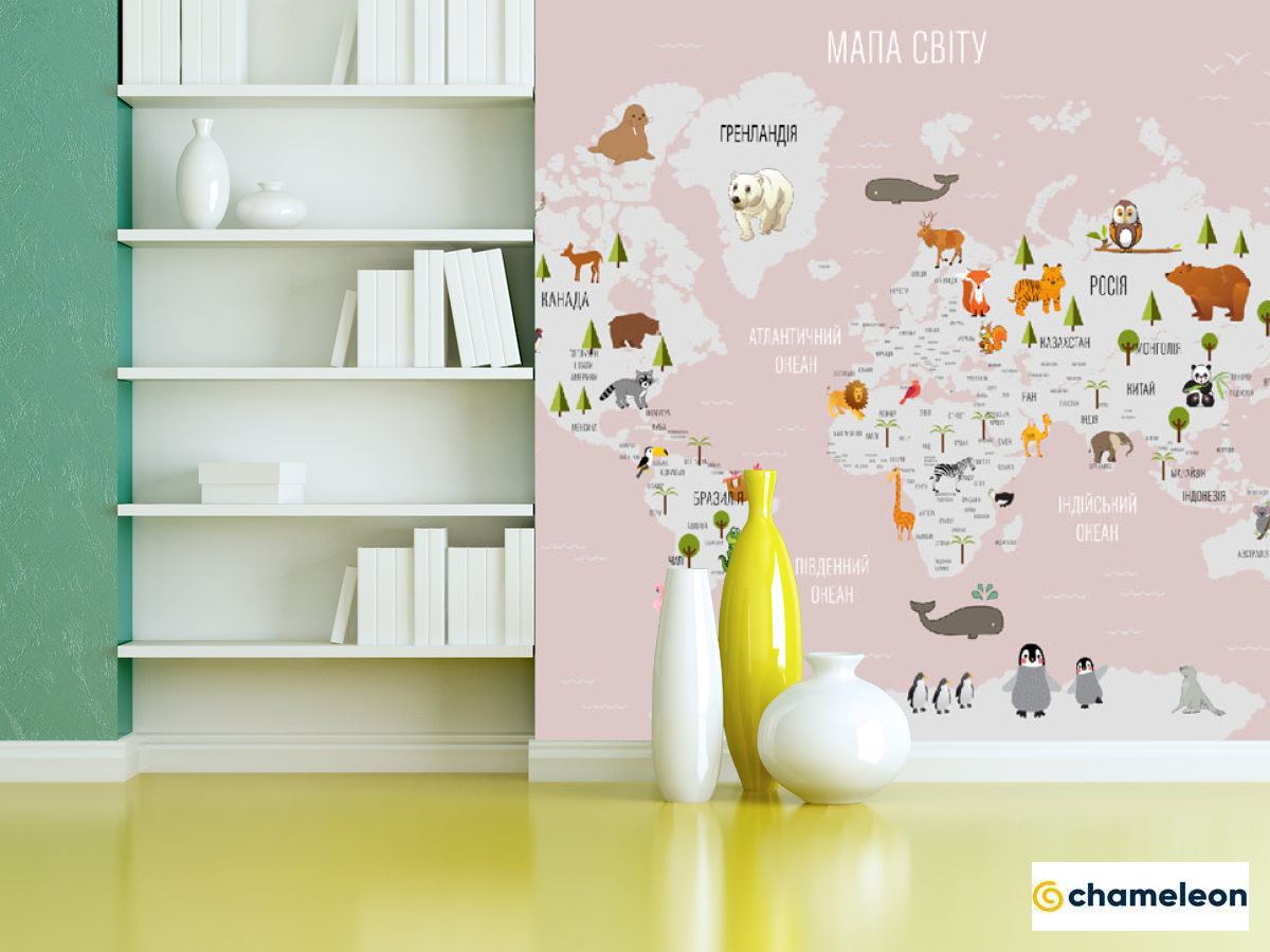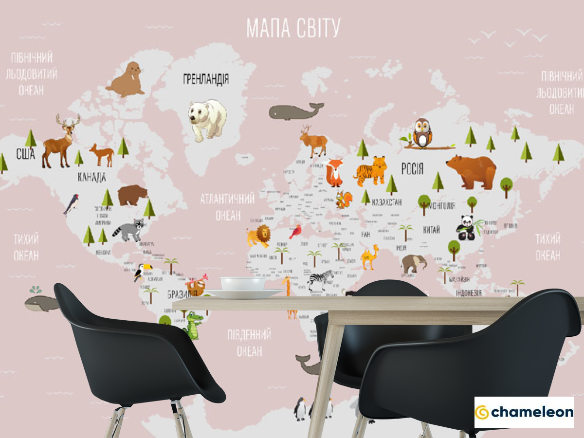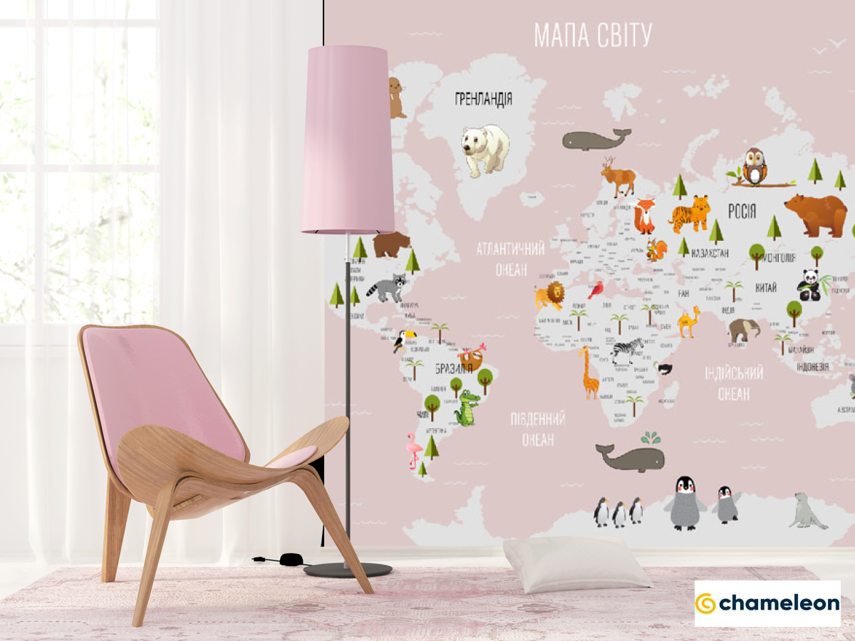 Фотошпалери «Фотошпалери рожева карта для дівчинки українською», (арт. 23012_1) - купити в інтернет-магазині «Будинок Фотошпалер» Хамелеон