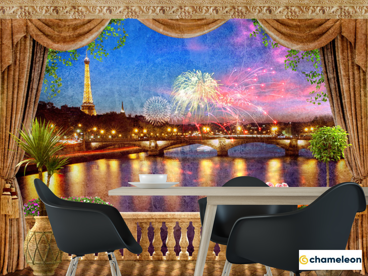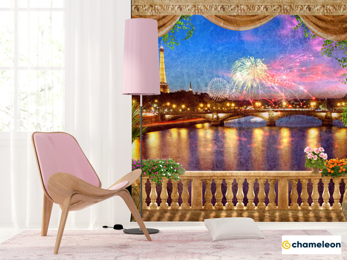 Фотошпалери «Фотошпалери Фреска вид на Париж», (арт. 23960) - купити в інтернет-магазині «Будинок Фотошпалер» Хамелеон
