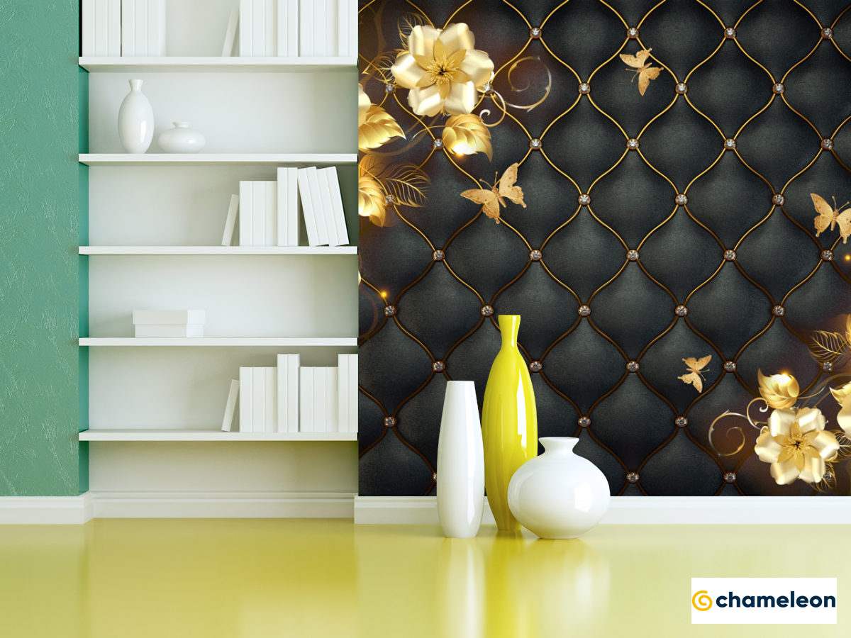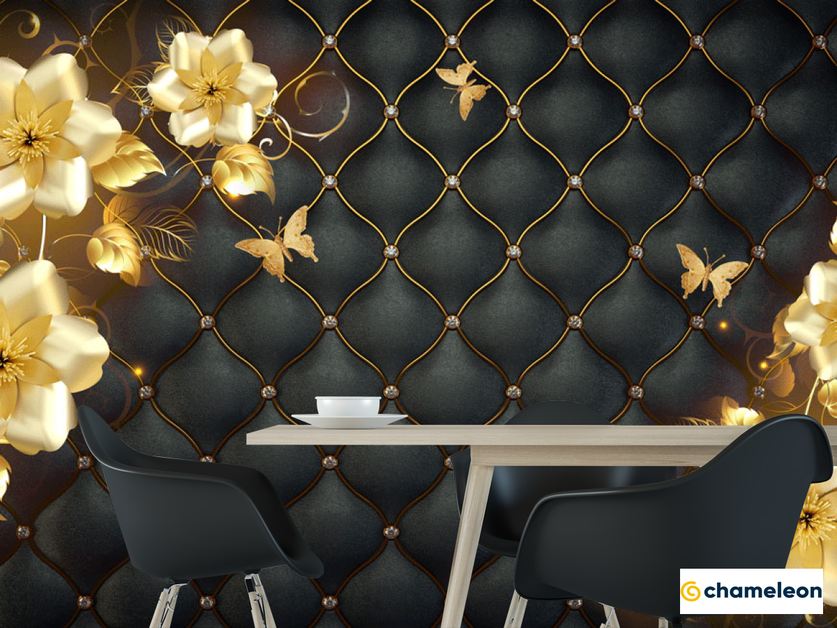 Фотошпалери «Фотошпалери 3д золоті квіти топлер», (арт. 23984) - купити в інтернет-магазині «Будинок Фотошпалер» Хамелеон