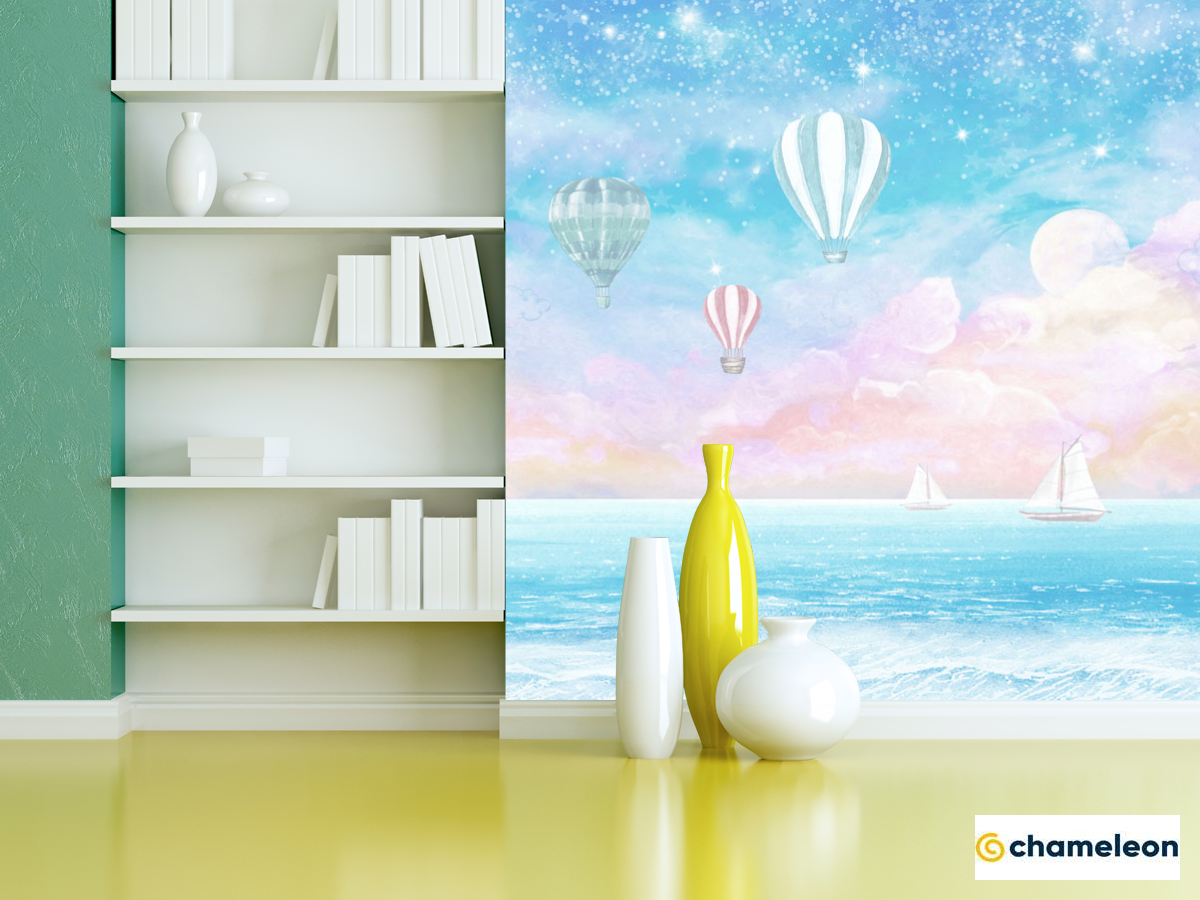 Фотошпалери «Фотошпалери Повітряні кулі на блакитному тлі», (арт. 24184) - купити в інтернет-магазині «Будинок Фотошпалер» Хамелеон
